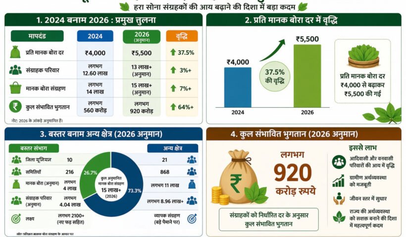 लगभग 920 करोड़ रुपए का होगा संभावित भुगतान तेंदूपत्ता संग्रहण कार्य में जुड़े 13 लाख से अधिक तेन्दूपत्ता संग्राहक परिवार रायपुर, छत्तीसगढ़ और अन्य वन…