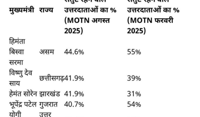 *इंडिया टुडे–C Voter के Mood of the Nation (MOTN) सर्वे के अनुसार छत्तीसगढ़ के मुख्यमंत्री विष्णु देव साय के कामकाज से अपने गृह राज्य में…