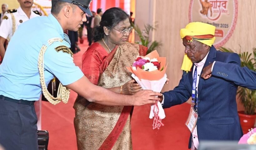 पण्डो जनजाति के बसन्त पण्डो से मिलकर जाना कुशलक्षेम, शॉल भेंट कर किया सम्मान रायपुर, राष्ट्रपति श्रीमती द्रौपदी मुर्मु जनजातीय गौरव दिवस 2025 के उपलक्ष्य…