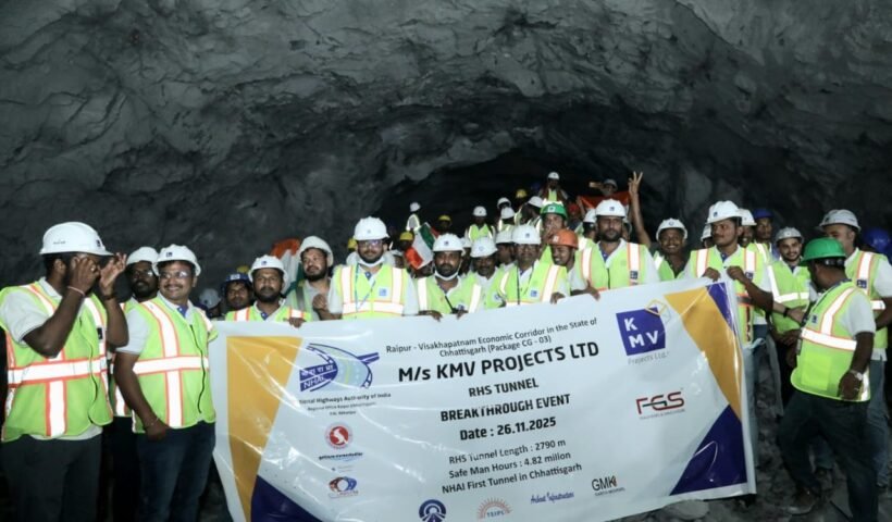 छत्तीसगढ़ के पहले राष्ट्रीय राजमार्ग सुरंग का ब्रेकथ्रू पूरा