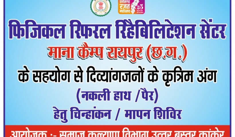 समाज कल्याण विभाग की महत्वपूर्ण पहल के तहत कांकेर जिले में दिव्यांगजनों के लिए कृत्रिम अंग (हाथ-पैर) प्रदान करने हेतु व्यापक चिन्हांकन एवं मापन शिविर…