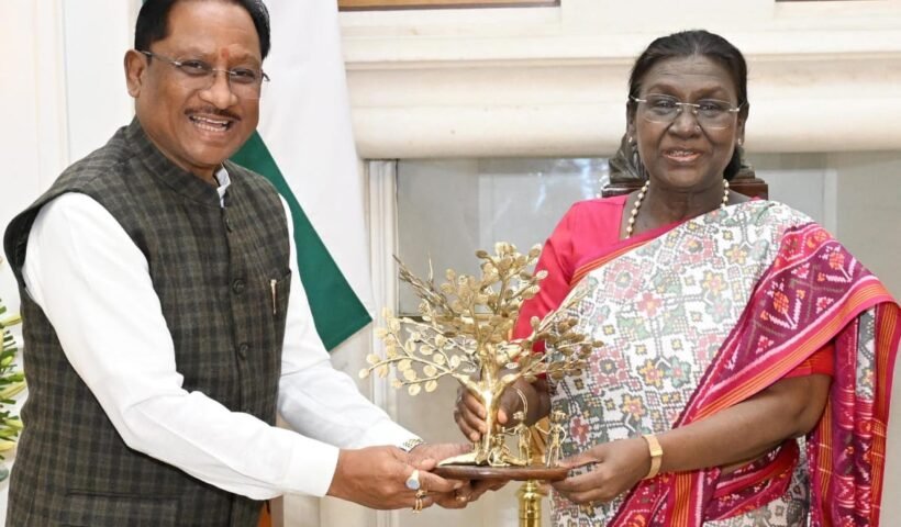 View More माता शाकम्बरी अन्न, प्रकृति और करुणा की प्रतीक है – उप मुख्यमंत्री श्री विजय शर्मामुख्यमंत्री विष्णुदेव साय ने राष्ट्रपति द्रौपदी मुर्मु से की सौजन्य मुलाकात, ‘बस्तर पंडुम 2026’ में किया आमंत्रित