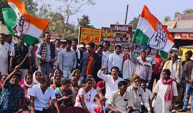 किसानों के समर्थन में कांग्रेस सड़क पर उतरी, पाकरगांव में चार घंटे धरना व सांकेतिक चक्का जाम