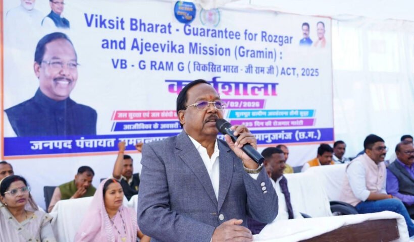 विकसित भारत गारंटी फॉर रोजगार एवं आजीविका मिशन पर एक दिवसीय कार्यशाला संपन्न रायपुर, आदिम जाति विकास मंत्री श्री रामविचार नेताम के उपस्थिति में जनपद पंचायत…