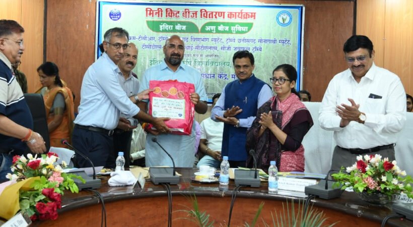 किसानों को कृषि विश्वविद्यालय द्वारा विकसित म्यूटेंट धान बीज के मिनी किट का वितरण रायपुर, इंदिरा गांधी कृषि विश्वविद्यालय रायपुर द्वारा भाभा अटामिक रिसर्च सेंटर…