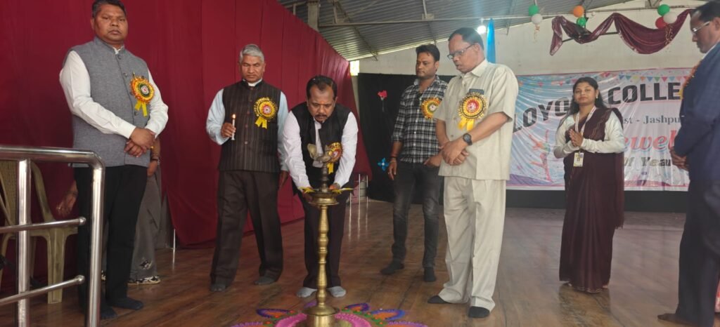 कुनकुरी। लोयोला महाविद्यालय कुनकुरी में वरिष्ठ विद्यार्थियों के सम्मान में विदाई समारोह (Farewell Party) का भव्य आयोजन किया गया। कार्यक्रम का शुभारंभ दीप प्रज्वलन कर विधिवत रूप से किया गया।इस अवसर पर कार्यक्रम के मुख्य अतिथि जिला पंचायत जशपुर के अध्यक्ष परम सम्माननीय श्री सालिक साय जी उपस्थित रहे।