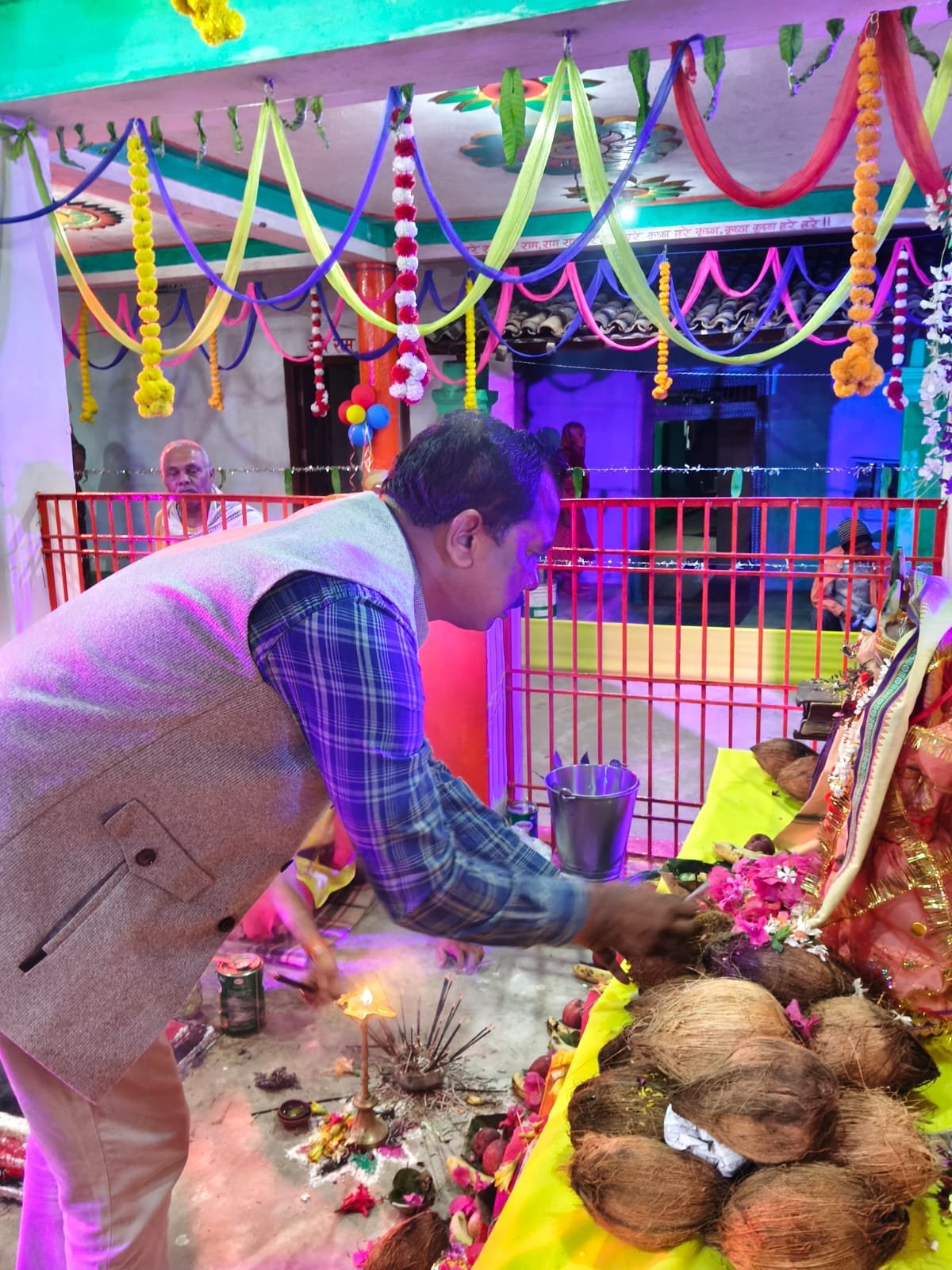 पत्थलगांव। कुड़केल खजरी बेगापारा में आयोजित अखंड अष्टप्रहरी नाम यज्ञ में जिला पंचायत अध्यक्ष सालिक साय सादगीपूर्ण अंदाज में शामिल हुए। इस दौरान उन्होंने भगवान के श्री चरणों में विधिवत पूजा-अर्चना कर क्षेत्र की सुख-समृद्धि और शांति की कामना की। कार्यक्रम में उनकी सादगी और भक्तिभाव ने उपस्थित श्रद्धालुओं का मन मोह लिया।यज्ञ स्थल पर पहुंचकर सालिक साय ने भजन-कीर्तन में शामिल होकर भक्तों के साथ मंडली में नामोच्चारण किया तथा परिक्रमा करते हुए श्रद्धालुओं का उत्साहवर्धन किया। धार्मिक वातावरण में उन्होंने श्रद्धालुओं के साथ बैठकर भोजन प्रसाद भी ग्रहण किया।