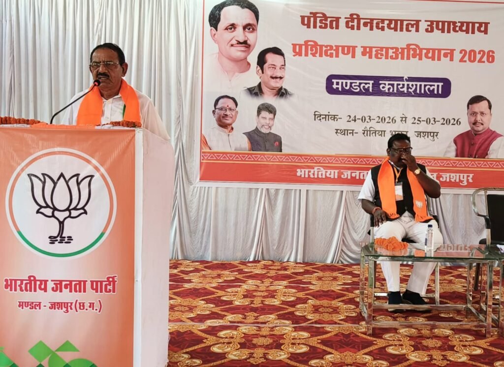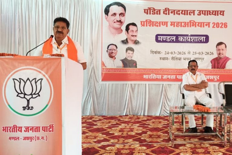 जशपुर। पण्डित दीनदयाल उपाध्याय प्रशिक्षण अभियान 2026 के अंतर्गत जशपुर मण्डल में आयोजित दो दिवसीय कार्यशाला का समापन उत्साह और गरिमामय वातावरण में सम्पन्न हुआ। दूसरे एवं अंतिम दिन की शुरुआत भारत माता, पंडित दीनदयाल उपाध्याय एवं डॉ. श्यामा प्रसाद मुखर्जी के तैल चित्र पर दीप प्रज्वलन तथा राजकीय गीत के साथ की गई।कार्यक्रम के दूसरे दिन विभिन्न विषयों पर वरिष्ठ नेताओं ने कार्यकर्ताओं का मार्गदर्शन किया और संगठन को मजबूत बनाने के लिए महत्वपूर्ण सुझाव दिए।