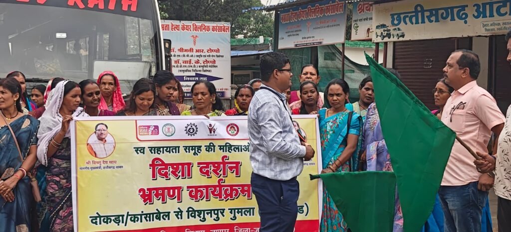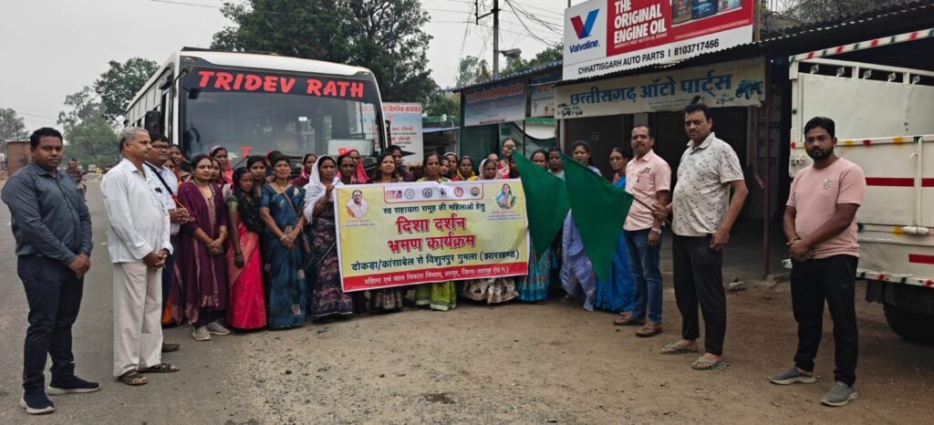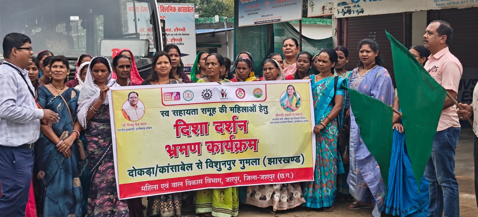 जशपुर। महिला एवं बाल विकास विभाग द्वारा आयोजित दिशा दर्शन कार्यक्रम के तहत स्व सहायता समूह की महिलाओं को अध्ययन भ्रमण के लिए रवाना किया गया। इस अवसर पर जिला पंचायत अध्यक्ष सालिक साय ने बस को हरी झंडी दिखाकर यात्रा के लिए रवाना किया। कार्यक्रम में भाजपा के भूतपूर्व जिला अध्यक्ष सुनील गुप्ता, केशव पांडे, मंडल उपाध्यक्ष घनश्याम अग्रवाल तथा भूषण वैष्णव भी उपस्थित रहे।दिशा दर्शन कार्यक्रम के अंतर्गत स्व सहायता समूह की महिलाओं को अन्य राज्यों के उत्कृष्ट स्व सहायता समूहों एवं संस्थानों का अध्ययन भ्रमण कराया जाता है।