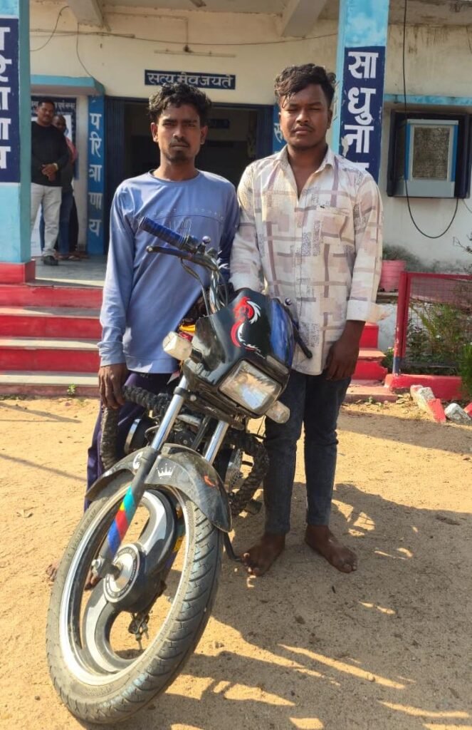 जिसके बाद फिल्मी अंदाज में मोटरसायकल सवारो द्वारा कार का पीछा करते हुये लगभग 07 किलोमीटर दूर ग्राम विचारपुर में रोककर कार सवार हरिल साय, निलिमा एवं रामप्यारी तिर्की को चाकू दिखलाकर जान से मारने की धमकी देते हुये लूट का प्रयास करने लगे इसी दौरान वहां पर कुछ ग्रामवासियों के आ जाने पर लुटेरे आरोपी गण भाग खड़े हुए भागते हुये आरोपियों ने अपनी बिना नंबर की मोटरसायकल घटना स्थल पर ही छोड़ दी।**अपराध पंजीबद्ध के चन्दघंटों में ही दोनों आरोपी बेलगहना-पुलिस के हत्थे चढ़े:—**उक्त घटना के संबंध में पीड़ितों के द्वारा भयवश एवं रात्रि होने से चौकी में कोई रिपोर्ट दर्ज नहीं करायी गई..02-अप्रैल को प्रार्थी हरिल साय टोप्पों पिता स्व. अमरसाय टोप्पो उम्र 32 वर्ष साकिन विचारपुर की रिपोर्ट पर बेलगहना पुलिस द्वारा अपराध पंजीबद्ध दर्ज करते हुए अपने वरिष्ठ आला अधिकारियों को अवगत कराकर आवश्यक दिशा निर्देश के बाद बेलगहना चौंकी प्रभारी हेमंत सिंह के नेतृत्व में टीम गठित कर आरोपियों की पतासाजी करने के चंद घण्टों में ही मामले के दोनों आरोपी 01- सिद्धान्त पाण्डेय उर्फ राज पाण्डेय/पिता राहुल पाण्डेय उम्र 20 वर्ष साकिन गंगानगर बेलगहना चौकी बेलगहना जिला बिलासपुर छ.ग.02-राजकुमार पोर्त उर्फ सोनू पिता/चुन्नीलाल पोर्ते उम्र 20 वर्ष साकिन करवा चौकी बेलगहना जिला बिलासपुर छ.ग. को पकड़कर कड़ाई से पूछताछ पूछताछ करने पर दोनों आरोपियों ने जुर्म करना स्वीकार किया..प्रकरण में आरोपी सिद्धान्त पाण्डेय से एक खंजरनुमा धारदार काले रंग का चाकू एवं आरोपी राजकुमार पोर्ते उर्फ सोनू से एक स्टील का फोल्डिंग धारदार चाकू कुल दो नग धारदार चाकू जप्त कर गिरफ्तार करते हुए अप/कमांक 00/2026 धारा 296, 351 (3)312.126 (2)3 (5) बीएनएस एवं 25.27 आर्म्स एक्ट के तहत दोनों आरोपियों को न्यायिक अभिरक्षा में जेल भेजा गया।