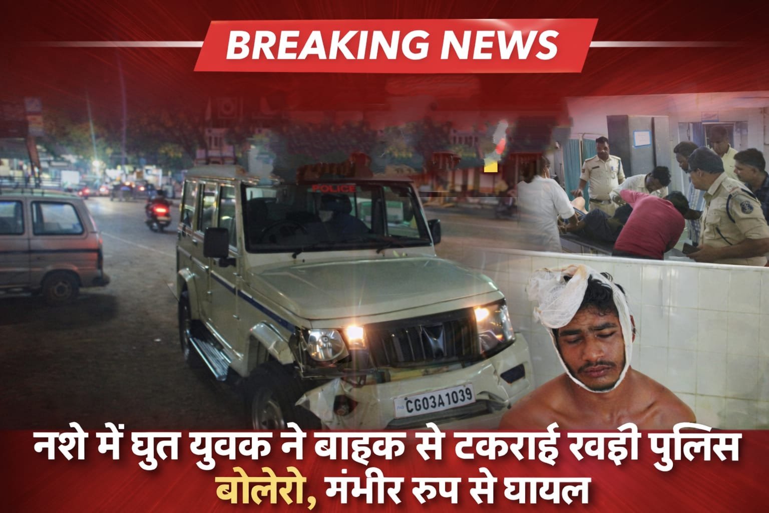 हादसे के तुरंत बाद मौके पर मौजूद पुलिस जवानों ने तत्परता दिखाते हुए घायल युवक को उसी दुर्घटनाग्रस्त पुलिस वाहन में बैठाकर तत्काल पत्थलगांव सिविल अस्पताल पहुंचाया, जहां उसका इलाज जारी है।घायल युवक की पहचान अर्जुन शाह (पिता गोविंद शाह), निवासी चरखापारा के रूप में हुई है। दुर्घटना में युवक के सिर पर गंभीर चोटें आई हैं और डॉक्टरों द्वारा उसके सिर पर कई टांके लगाए गए हैं।स्थानीय लोगों के अनुसार युवक नशे की हालत में था, हालांकि घायल युवक ने नशे में होने की बात से साफ इनकार किया है। उसका कहना है कि वह बाइक से जा रहा था, तभी अचानक हादसा हो गया और वह बेसुध हो गया।