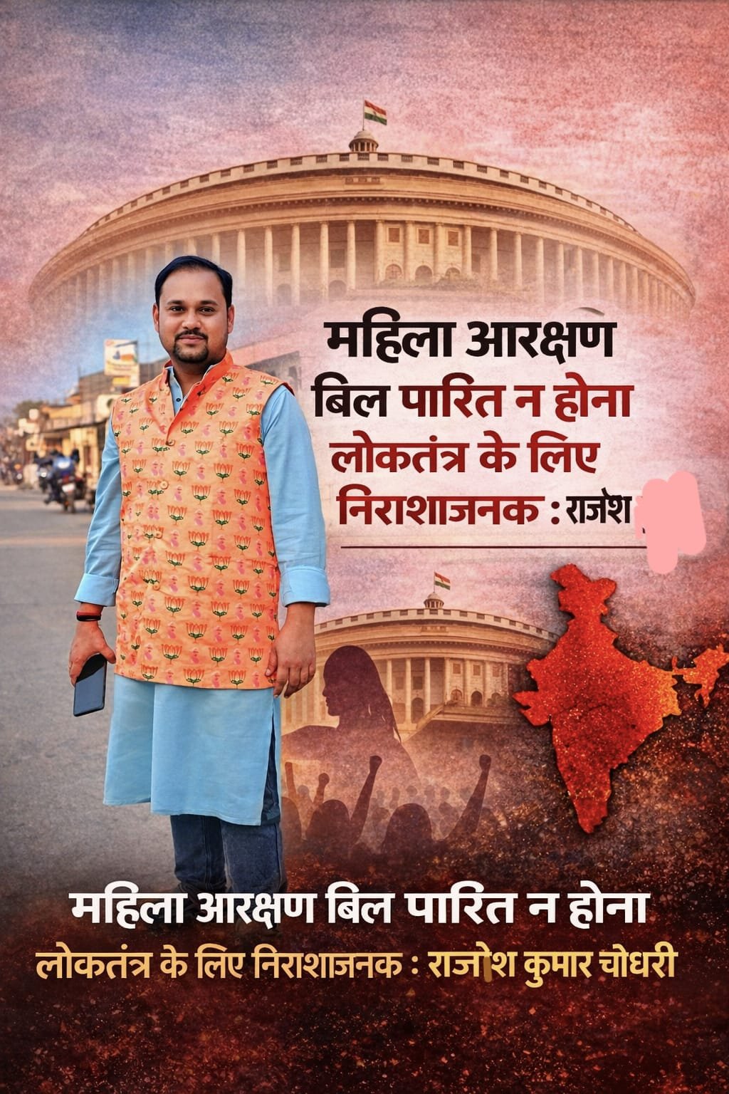 पत्थलगांव।भाजपा युवा मोर्चा के मंडल अध्यक्ष राजेश कुमार चौधरी ने मीडिया को जारी अपने आधिकारिक बयान में कहा कि महिला आरक्षण बिल का सदन में पारित न होना लोकतंत्र के लिए बेहद निराशाजनक है। उन्होंने कहा कि महिलाओं को 33 प्रतिशत प्रतिनिधित्व देने वाला यह बिल देश की आधी आबादी की उम्मीदों से जुड़ा हुआ था, लेकिन इसका पारित न हो पाना महिलाओं के अधिकारों और आकांक्षाओं पर आघात है।राजेश कुमार चौधरी ने कहा कि यह मुद्दा राजनीति से ऊपर है, लेकिन दुर्भाग्यवश कुछ विपक्षी दल इस ऐतिहासिक पहल पर एकजुटता नहीं दिखा सके। उन्होंने कहा कि जो भी राजनीतिक दल इस बिल के समर्थन में खड़े नहीं हुए, उनमें कांग्रेस सहित अन्य विपक्षी दल शामिल हैं, जिन्होंने महिलाओं के सशक्तिकरण के मुद्दे पर गंभीरता नहीं दिखाई।उन्होंने कहा कि जब देश की महिलाएं हर क्षेत्र में अपनी क्षमता साबित कर रही हैं—चाहे वह सेना हो, विज्ञान हो, राजनीति हो या खेल—तब निर्णय लेने वाली संस्थाओं में उनकी भागीदारी सुनिश्चित करना जरूरी है। महिलाओं को सम्मान और समान अवसर देना कोई विकल्प नहीं बल्कि समाज और लोकतंत्र का कर्तव्य है।राजेश कुमार चौधरी ने कहा कि महिला आरक्षण कोई रियायत नहीं बल्कि समान अवसर का अधिकार है। उन्होंने केंद्र सरकार और संसद से मांग की कि महिला आरक्षण बिल को जल्द से जल्द पुनः सदन में लाया जाए और सर्वसम्मति से पारित किया जाए, ताकि देश की महिलाओं को उनका उचित प्रतिनिधित्व मिल सके।उन्होंने कहा कि आज का दिन भारतीय लोकतंत्र के इतिहास में एक दुर्भाग्यपूर्ण दिन के रूप में याद किया जाएगा, क्योंकि यह केवल एक बिल का गिरना नहीं बल्कि देश की आधी आबादी की आशाओं और सपनों पर चोट है।