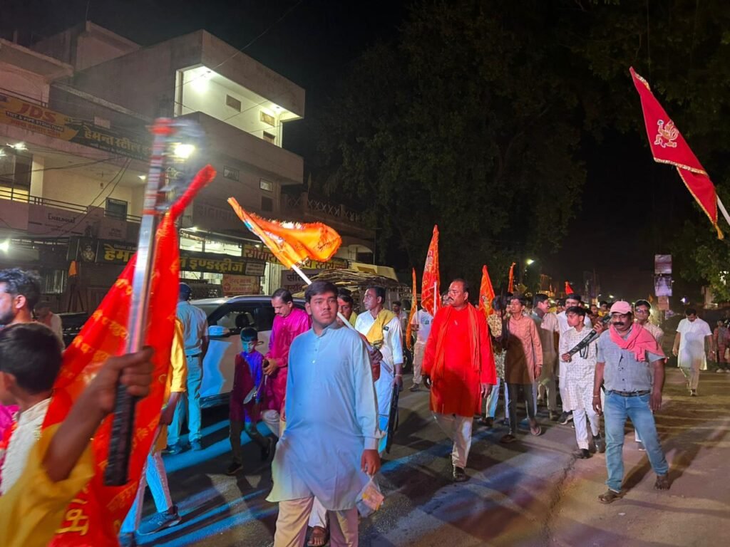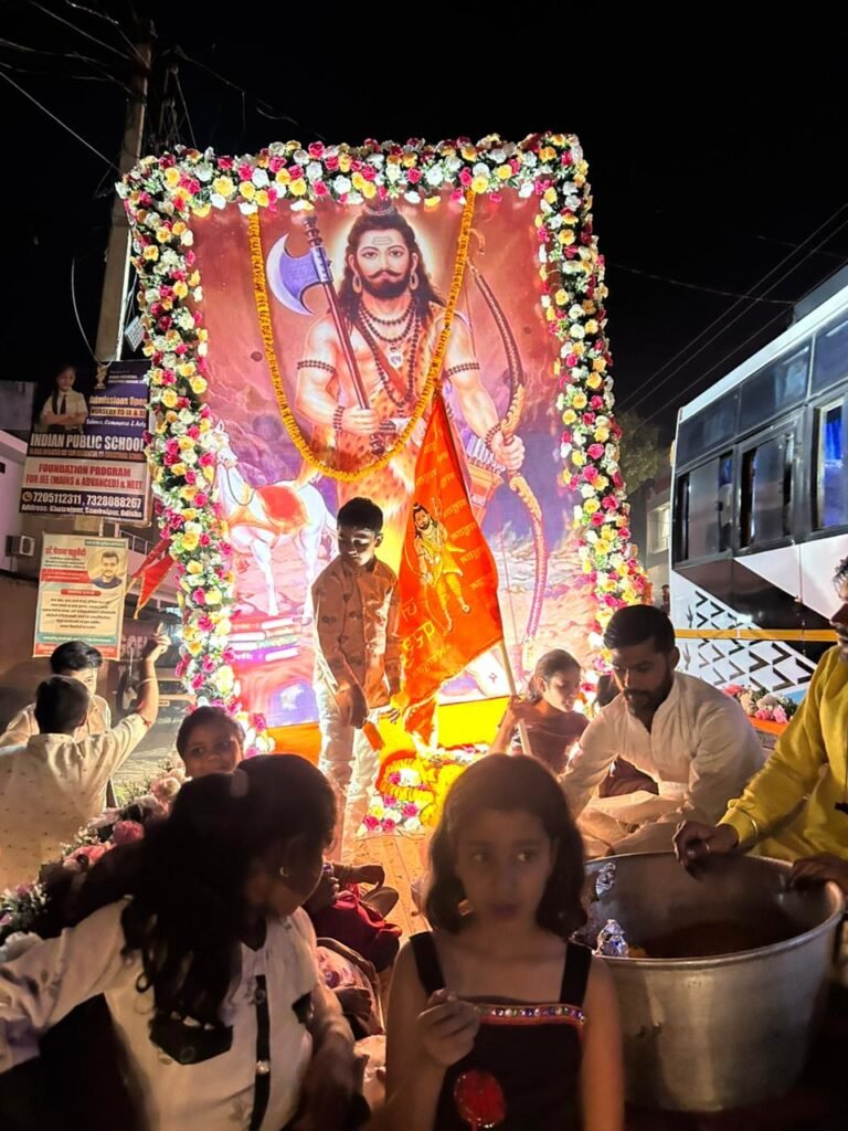 शोभायात्रा से पूर्व सर्वप्रथम महाराज द्वारा भगवान परशुराम की प्रतिमा पर दीप प्रज्वलित कर यात्रा का शुभारंभ किया गया। इस दौरान भगवान परशुराम की वेशभूषा में आकर्षक झांकी सजाई गई। डीजे की धुन, हाथों में सनातन ध्वज और “जय परशुराम” के जयघोष के साथ युवाओं की टोली पूरे नगर में उत्साह के साथ आगे बढ़ती रही।