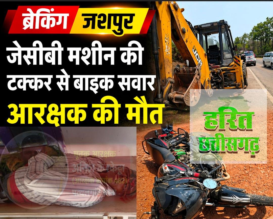 जशपुर।जिले में एक दर्दनाक सड़क हादसे में बाइक सवार आरक्षक की मौत हो गई। जानकारी के अनुसार जेसीबी मशीन की टक्कर से यह दुर्घटना हुई, जिसमें आरक्षक की मौके पर ही मौत हो गई।मृतक आरक्षक की पहचान अनिल केरकेट्टा (आरक्षक क्रमांक 482) के रूप में हुई है, जो पत्थलगांव थाने में पदस्थ थे। बताया जा रहा है कि अनिल केरकेट्टा अपने रिश्तेदार के यहां शादी समारोह में शामिल होने के लिए छुट्टी पर गए हुए थे और छुट्टी समाप्त होने के बाद वापस पत्थलगांव ड्यूटी जॉइन करने जा रहे थे।इसी दौरान सिटी कोतवाली थाना क्षेत्र के लोरो घाट के पास उनकी बाइक को जेसीबी मशीन ने टक्कर मार दी, जिससे गंभीर चोट लगने के कारण उनकी मौत हो गई।मृतक आरक्षक अनिल केरकेट्टा, पिता सोहन केरकेट्टा, निवासी ग्राम मरता, सीतापुर के रहने वाले थे। हादसे की सूचना मिलते ही पुलिस मौके पर पहुंची और शव को अपने कब्जे में लेकर आगे की कार्रवाई शुरू कर दी।पुलिस ने मामला दर्ज कर घटना की जांच शुरू कर दी है। इस हादसे से पुलिस विभाग में शोक की लहर है।