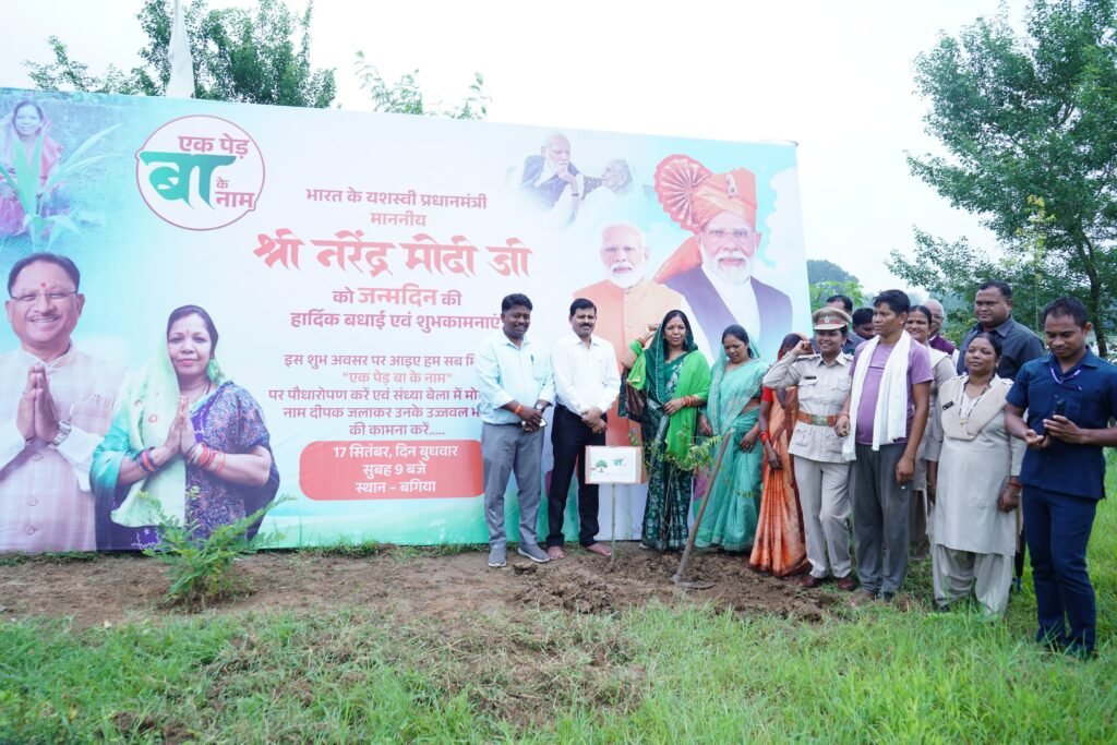 जशपुरनगर। आज प्रधानमंत्री श्री नरेंद्र मोदी के जन्म दिवस के शुभ अवसर पर मुख्यमंत्री विष्णुदेव साय की धर्मपत्नी श्रीमती कौशल्या साय ने प्रातः 9 बजे बगिया स्थित श्री फलेश्वर नाथ मंदिर परिसर में पौधारोपण किया। इस अवसर पर स्थानीय जनप्रतिनिधि, सामाजिक कार्यकर्ता एवं आमजन उपस्थित रहे।श्रीमती कौशल्या साय ने कहा कि प्रधानमंत्री श्री नरेंद्र मोदी पिछले 11 वर्षों से राष्ट्र निर्माण के लिए लगातार समर्पण भाव से कार्य कर रहे हैं।