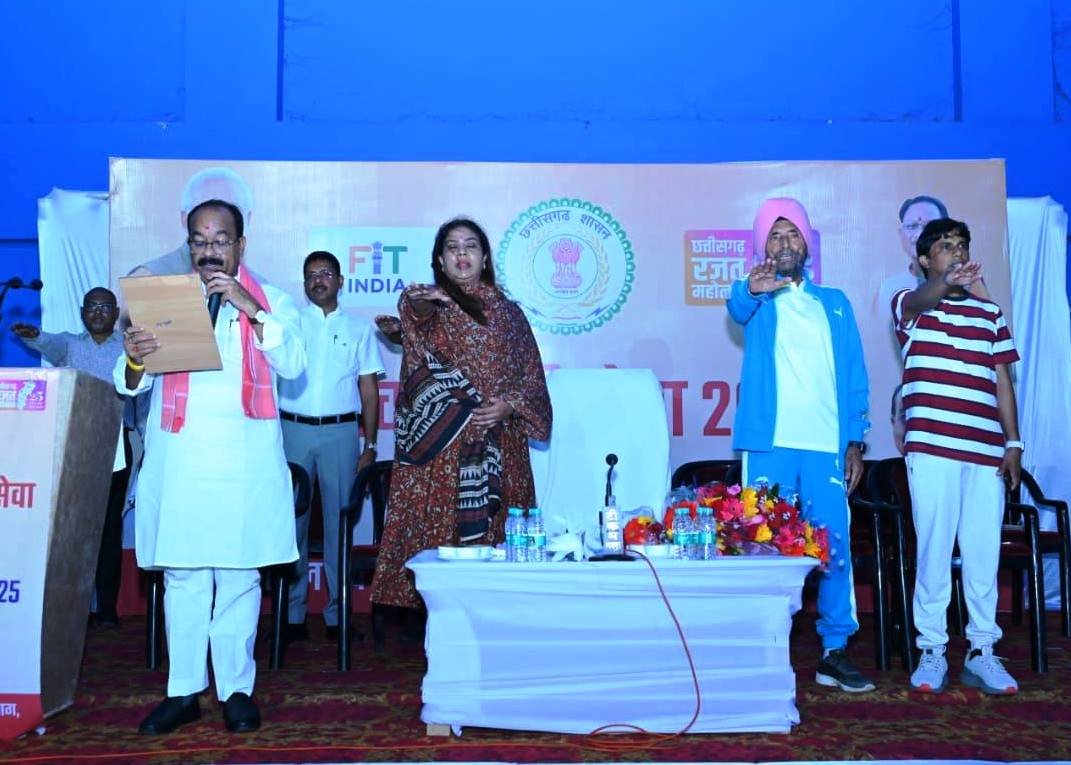 उप मुख्यमंत्री तथी खेल एवं युवा कल्याण मंत्री श्री अरुण साव ने आज रायपुर के कोटा स्थित स्वामी विवेकानंद स्टेडियम में खेल एवं युवा कल्याण विभाग के “स्वच्छता ही सेवा–2025” अभियान का शुभारंभ किया। उन्होंने इस अवसर पर प्रधानमंत्री श्री नरेन्द्र मोदी को जन्मदिन की बधाई एवं शुभकामनाएं दीं तथा खिलाड़ियों, खेल संघों के पदाधिकारियों, अधिकारियों व कर्मचारियों को स्वच्छता की शपथ दिलाई। “स्वच्छता ही सेवा” अभियान के शुभारंभ के मौके पर स्वास्थ्य विभाग के सहयोग से स्टेडियम में आयोजित स्वास्थ्य शिविर में खिलाड़ियों ने अपने स्वास्थ्य की जांच कराई।