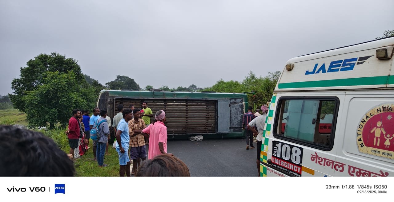 इस दुर्घटना में बस में सवार अन्य 4 यात्री घायल हो गए हैं। हादसे के समय बस में कुल 23 यात्री सवार थे। सभी घायलों को इलाज के लिए नजदीकी अस्पताल में भर्ती कराया गया है।👉 पुलिस मौके पर पहुंच गई है और दुर्घटना के कारणों की जांच की जा रही है।