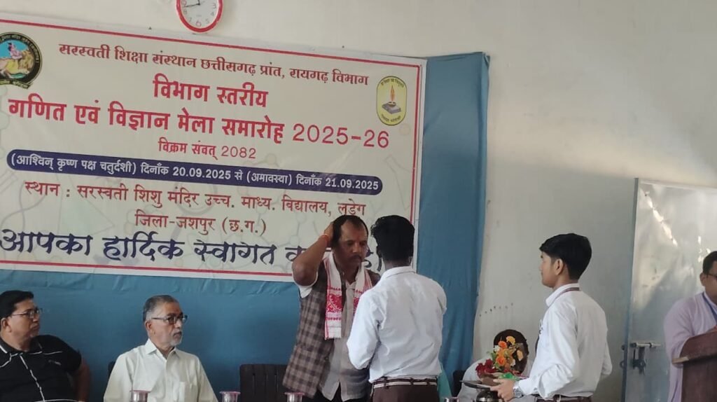 पत्थलगांव। सरस्वती शिक्षा संस्थान छत्तीसगढ़ प्रांत रायगढ़ विभाग स्तरीय गणित एवं विज्ञान मेला समारोह का भव्य समापन लुड़ेग स्थित सरस्वती शिशु मंदिर में हुआ। दो दिवसीय इस मेले में जिलेभर से आए छात्र-छात्राओं ने गणित और विज्ञान विषयों पर आधारित मॉडल, प्रोजेक्ट और प्रयोग प्रस्तुत कर अपनी प्रतिभा का शानदार प्रदर्शन किया।