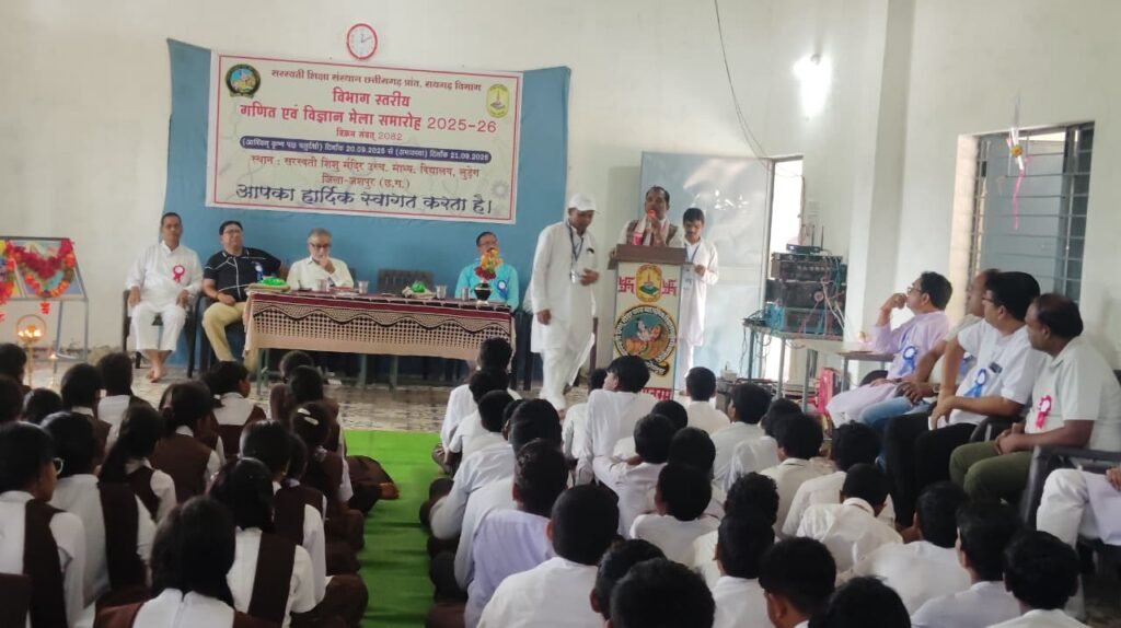 ऐसे आयोजन से उनमें अनुसंधान की जिज्ञासा और नवाचार की भावना का विकास होता है।” उन्होंने विद्यार्थियों को मेहनत, लगन और अनुशासन को जीवन का मूल मंत्र बनाने की प्रेरणा भी दी।अन्य अतिथियों ने भी छात्रों के प्रयासों की सराहना करते हुए विज्ञान और गणित शिक्षा को भविष्य निर्माण की आधारशिला बताया।इस अवसर पर संस्था के प्राचार्य सीताराम प्रधान, नरेश नंदे, छत्रमोहन यादव, शकुन्तला यादव, रीता प्रधान, राजेंद्र यादव सहित शाला परिवार के सभी आचार्य-दीदीजी, बड़ी संख्या में छात्र-छात्राएँ, अभिभावक एवं नगर के गणमान्य नागरिक उपस्थित रहे।कार्यक्रम का पूरा वातावरण उत्साह, उमंग और ऊर्जा से परिपूर्ण रहा।