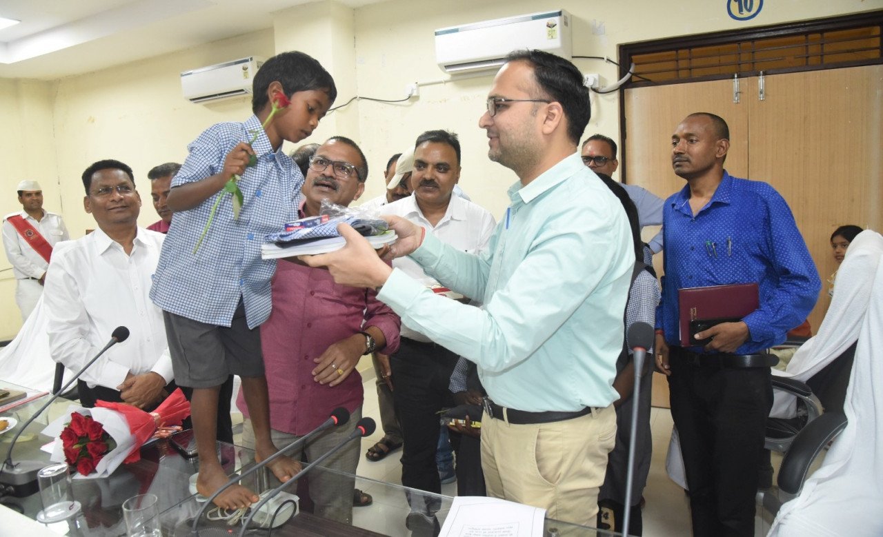 विभिन्न परिस्थितियों के कारण शाला छोड़ चुके बच्चों को पुनः शिक्षा की मुख्यधारा से जोड़ने सरगुजा जिला प्रशासन की पहल अब रंग ला रही है। कलेक्टर के निर्देशानुसार शिक्षा विभाग द्वारा विकासखण्ड स्तरीय समिति का गठन किया गया। जिले में विशेष अभियान चलाकर शाला त्यागी बच्चों का चिन्हांकन किया जा रहा है। इसी कड़ी में आज विकासखण्ड लुण्ड्रा के छेरमुंडा संकुल के विशेष पिछड़ी जनजाति पहाड़ी कोरवा के 06 शालात्यागी बच्चों को स्कूल में प्रवेश दिलाया गया। जिला कलेक्टोरेट सभाकक्ष में कलेक्टर ने इन बच्चों को पुस्तक, स्कूल ड्रेस सहित अन्य सामग्री प्रदान कर औपचारिक शाला प्रवेश कराया। अध्ययन सामग्री पाकर बच्चों के चेहरे पर मुस्कान आ गई, बच्चों ने कहा कि अब हम स्कूल जाना नहीं छोड़ेंगे।