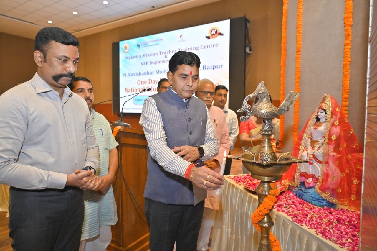 उच्च शिक्षा मंत्री श्री टंक राम वर्मा ने नई शिक्षा नीति 2020 पर आजपं. रविशंकर शुक्ल विश्वविद्यालय, रायपुर में मालवीया मिशन टीचर ट्रेनिंग सेंटर एवं एनईपी इम्प्लीमेंटेशन सेल के संयुक्त तत्वावधान में राष्ट्रीय शिक्षा नीति-2020 पर एक दिवसीय कार्यशाला का आयोजन किया गया। विश्वविद्यालय सभागार में आयोजित इस कार्यशाला में उच्च शिक्षा मंत्री श्री टंक राम वर्मा ने कहा कि राष्ट्रीय शिक्षा नीति-2020 देश की शिक्षा व्यवस्था को नई दिशा और दृष्टि देने वाली है। यह नीति न केवल विद्यार्थियों के सर्वांगीण विकास पर बल देती है बल्कि इसमें कौशल विकास, रोजगारपरक शिक्षा और अनुसंधान को भी प्राथमिकता दी गई है। उन्होंने कहा कि नई शिक्षा नीति से उच्च शिक्षा संस्थानों को अकादमिक उत्कृष्टता प्राप्त करने का अवसर मिलेगा और युवाओं का भविष्य और भी उज्ज्वल होगा। सरकार निरंतर प्रयासरत है कि प्रदेश का प्रत्येक युवा गुणवत्तापूर्ण शिक्षा प्राप्त करे और अपनी प्रतिभा के बल पर समाज और राष्ट्र के विकास में योगदान दे।