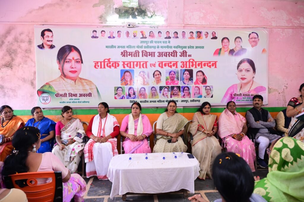 *भाजपा महिला मोर्चा की प्रदेशाध्यक्ष श्रीमती विभा अवस्थी के प्रथम जशपुर आगमन पर कार्यकर्ताओं ने किया जोरदार स्वागत, जिला कार्यालय में हुई बैठक में महिलाओं की भागीदारी बढ़ाने पर जोर।भारतीय जनता पार्टी महिला मोर्चा की नवनियुक्त प्रदेशाध्यक्ष श्रीमती विभा अवस्थी का बुधवार को जशपुर आगमन पर महिला मोर्चा कार्यकर्ताओं ने गर्मजोशी से स्वागत किया। फूलमालाओं, नारों और ढोल-नगाड़ों के बीच उनका स्वागत करते हुए कार्यकर्ताओं ने पूरे जिले में उत्साह का वातावरण बना दिया।स्वागत कार्यक्रम के पश्चात जिला भाजपा कार्यालय जशपुर में एक जिला स्तरीय बैठक आयोजित की गई, जिसमें प्रदेशाध्यक्ष श्रीमती विभा अवस्थी, पत्थलगांव विधायक श्रीमती गोमती साय, जशपुर विधायक श्रीमती रायमुनी भगत, तथा महिला मोर्चा जिलाध्यक्ष श्रीमती ममता कश्यप ने उपस्थित कार्यकर्ताओं को संबोधित किया।प्रदेशाध्यक्ष श्रीमती विभा अवस्थी ने अपने उद्बोधन में कहा “भाजपा महिला मोर्चा आज देशभर में महिलाओं की आवाज़ बन चुकी है। प्रधानमंत्री नरेंद्र मोदी और प्रदेश नेतृत्व के मार्गदर्शन में हमें यह सुनिश्चित करना है कि हर महिला राजनीतिक, सामाजिक और आर्थिक रूप से सशक्त बने। जशपुर की महिलाएं हमेशा संगठन की रीढ़ रही हैं, और अब हमारा लक्ष्य है कि बूथ स्तर तक महिला कार्यकर्ता सक्रिय हों। हमें समाज के हर वर्ग तक पहुँचकर भाजपा की नीतियों और योजनाओं को बताना है। महिला मोर्चा केवल संगठन नहीं, बल्कि सेवा और संकल्प की भावना का प्रतीक है।