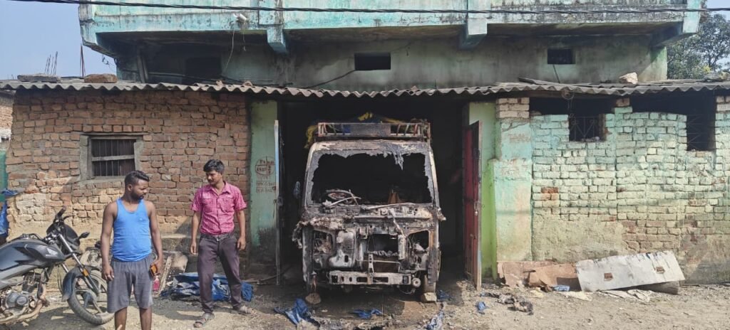 ग्रामीणों ने आग बुझाने की कोशिश की, लेकिन तब तक वाहन पूरी तरह जल चुका था।फिलहाल आग लगने के कारणों का खुलासा नहीं हो सका है। यह स्पष्ट नहीं है कि आग स्वतः लगी या किसी ने लगाई। पुलिस मामले की जांच में जुटी हुई है।