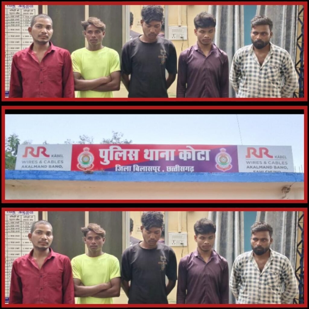 **दिनांक:-14/10/2025**मोहम्मद जावेद खान हरित छत्तीसगढ।।**करगीरोड-कोटा:-जुआ सट्टा एवं आपराधिक गतिविधियों पर अंकुश लगाने हेतु जिला पुलिस का प्रहार जारी है, वरिष्ठ जिला पुलिस कप्तान रजनेश सिंह के नेतृत्व में विभागीय मातहत के देखेरख में ये पूरा अभियान चलाया जा रहा है..इसी कड़ी में 13- अक्टूबर को मुखबिर की सूचना पर कोटा पुलिस को देवरिहापारा कोटा में कुछ व्यक्तियो द्वारा 52 ताश पत्ती से रुपए-पैसे का दांव लगाकर जुआ खेले जाने की सूचना मिलने पर कोटा पुलिस की टीम द्वारा बताए गए स्थान की घेराबंदी कर दबिश दी गई, पुलिस की अचानक हुई छापामार कार्यवाही से कुछ जुआरी तो मौके से भाग निकले वही मौके पर 05- जुआरी कोटा पुलिस के हत्थे चढ़ गए पकड़े गए जुआरियों से कुल 2620/₹ नकद रुपए सहित 52-पत्ती ताश एवं एक बोरी की फट्टी बरामद की गई।**पकड़े गए सभी पांचों जुआरी कोटा के:–* *मौके पर पकड़े गए आरोपियों में शैलेन्द्र खुसरो/पिता शिवनारायण खुसरो, उम्र 23 वर्ष साकिन पडावपारा कोटा, राजा कश्यप/पिता राममिलन उम्र 29-वर्ष साकिन-बोईर खोली कोटा..प्रमोद ध्रुव/पिता जनकराम ध्रुव, उम्र 25-वर्ष साकिन देवरिहापारा कोटा, नारायण केंवट पिता भगत केवट,उम्र 31-वर्ष साकिन देवरिहापारा कोटा, दुर्गेश निषाद/पिता अर्जुन निषाद, उम्र 25 वर्ष साकिन देवरिहापारा-कोटा जिला बिलासपुर (छ.ग) उक्त सभी आरोपियों पर 3(2) जुआ एक्ट 2022 के अंतर्गत विधिवत कार्यवाही की गई है..थाना प्रभारी तोपसिंह नवरंग ने कहा कि कोटा पुलिस का यह अभियान आगे भी जारी रहेगा।*