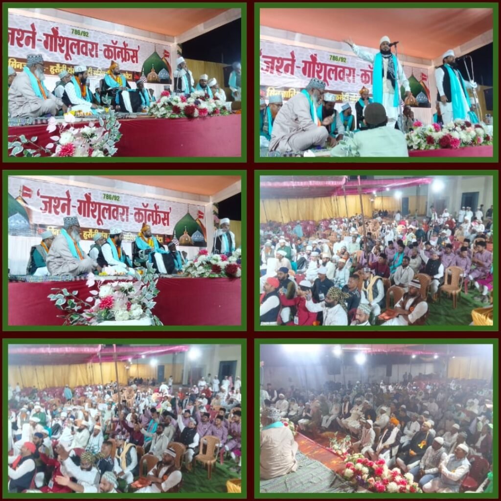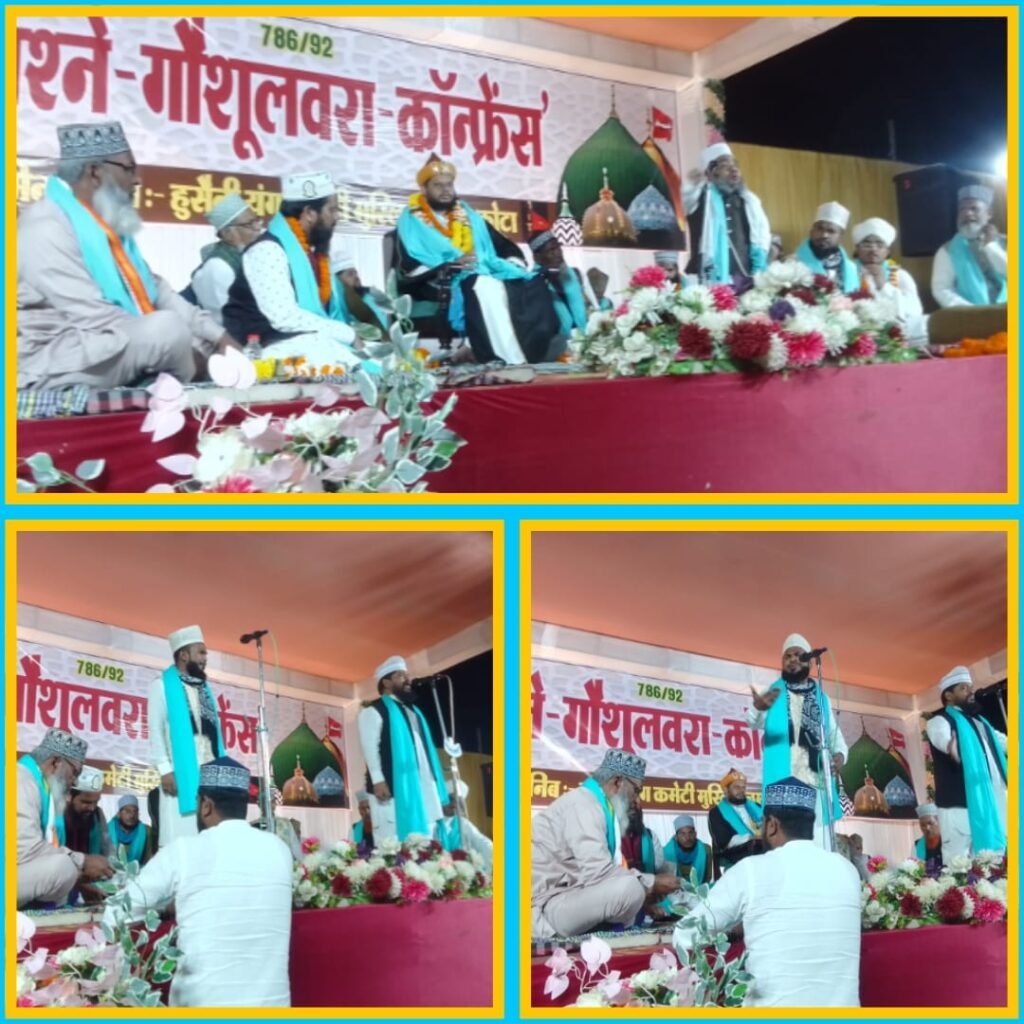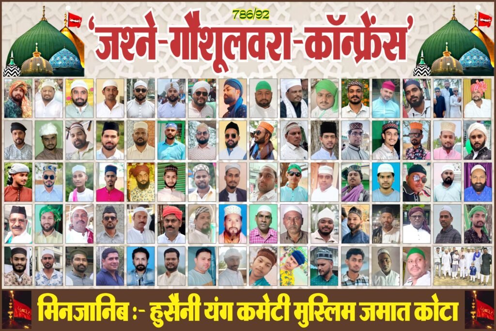 हुसैनी-यंग-कमेटी मुस्लिम-जमात कोटा के तत्वाधान में 22 अक्टूबर को जश्ने- गौसुलवरा-कॉन्फ्रेंस कोटा के 24 कैरेट होटल लॉन एरिया में संपन्न हुआ जलसे में मेहमान-खुसूसी के तौर पर हिंदुस्तान के जाने माने शायरे-इस्लाम शकील-शादाब नूरुल- हुदा पैकर कलकत्ता से अजमत इलाहाबादी इलाहाबाद से नकीबे आजम हलचल शिवानी कलकत्ता सहित बिलासपुर सुन्नी-हुसैनी मस्जिद के खतीबों इमाम हाजी सैय्यद जाहिर आगा साहब व नात-खा दानिश अराफात शाकीबी रिजवी रजा कादरी सलीम रिजवी की जलसे में मौजूदगी रही जलसे की जेरे सदारत कोटा मस्जिदें ताहा के खतीबों इमाम हाफिज गुलजार साहब रिजवी ने की वही पूरे जलसे की जेरे सरपरस्ती मस्जिद कमेटी कोटा के मौजूदा सदर जनाब बशीर बेग साहब ने की।