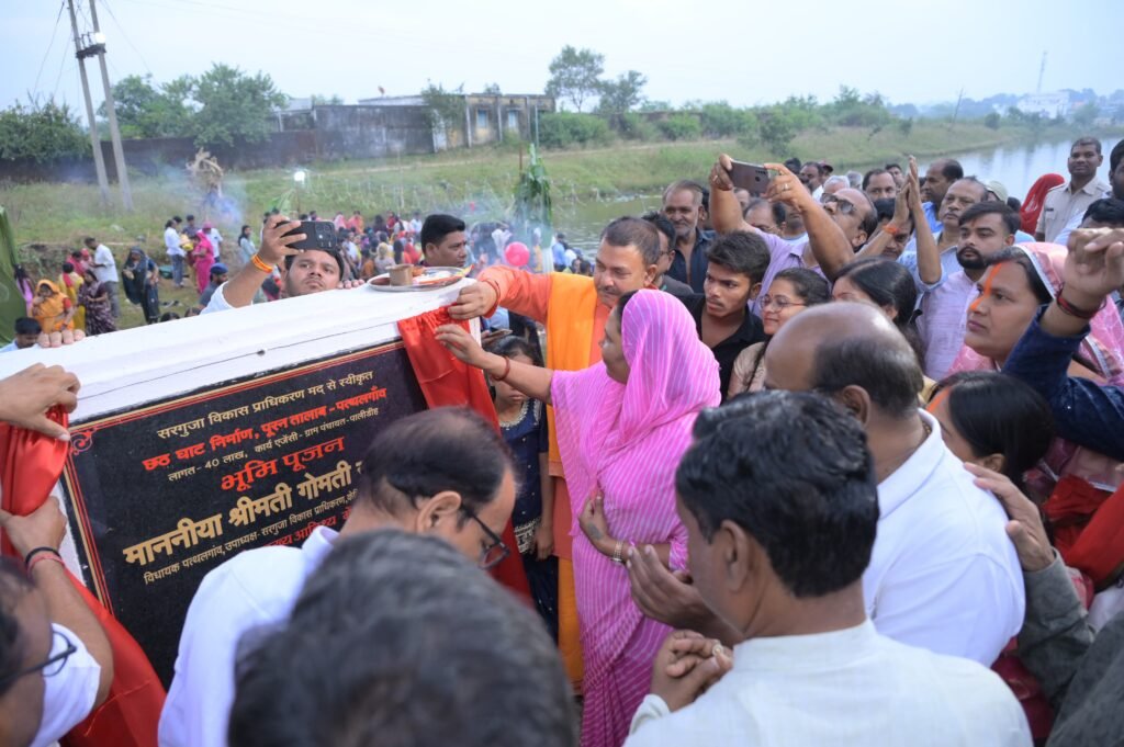 इस अवसर पर पत्थलगांव विधायक गोमती साय भी पूरन तालाब स्थित छठ घाट पहुंचीं और भगवान भास्कर को अर्घ्य अर्पित किया एवं घाट में घूमकर व्रती महिलाओं ओर श्रृद्धालुओं से मुलाकात भी की उन्होंने बताया कि पिछले वर्ष छठ घाट निर्माण की जो घोषणा की गई थी, उसे आज पूरा किया गया है। उन्होंने 40 लाख रुपये की लागत से पक्के सीमेंट घाट निर्माण के लिए भूमिपूजन किया। इस दौरान विधायक ने अपने हाथों से प्रसाद का भी वितरण किया।
