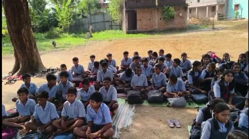 जमीनों पर बैठकर पढाई कर रहा हैं.?