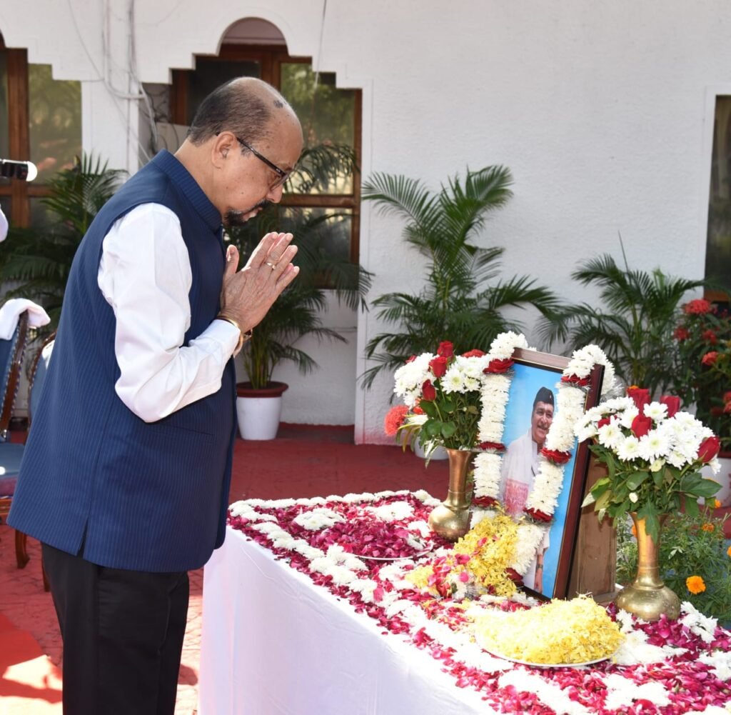रायपुर, 05 नवम्बर 2025/उपराष्ट्रपति श्री सी.पी. राधाकृष्णन, राज्यपाल श्री रमेन डेका एवं मुख्यमंत्री श्री विष्णु देव साय ने आज राजभवन में आधुनिक असम के सांस्कृतिक क्षेत्र में महत्वपूर्ण योगदान देने वाले बहुमुखी प्रतिभा के धनी, भारत रत्न डॉ. भूपेन हजारिका जी की पुण्यतिथि पर उन्हें नमन करते हुए पुष्पांजलि अर्पित की।
