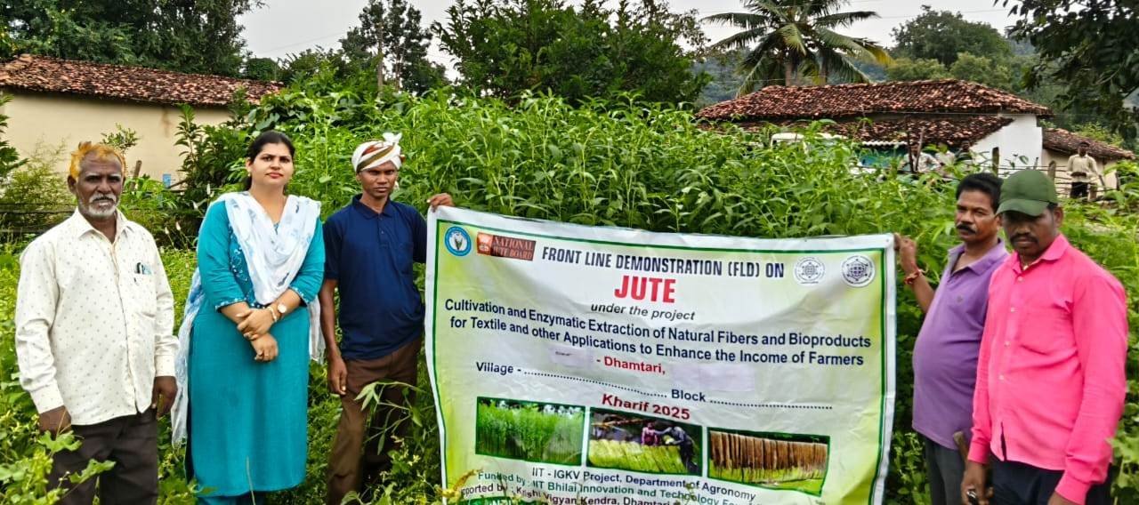 छत्तीसगढ़ के किसान जूट के धागों से अपनी तरक्की की नई राह गढ़ेंगे। राज्य में जूट की खेती की संभावनाए तलाशने तथा इस फसल के क्षेत्र विस्तार के लिए इंदिरा गांधी कृषि विश्वविद्यालय में संचालित अखिल भारतीय जूट अनुसंधान परियोजना के तहत महती प्रयास किये जा रह है। जूट की फसल को बढ़ावा देने के लिए इंदिरा गांधी कृषि विश्वविद्यालय द्वारा आईआईटी भिलाई के तकनिकी सहयोग तथा आई.बी.आई.टी.एफ. के वित्त पोषण से यह परियाजना संचालित की जा रही है। विश्वविद्यालय द्वारा कृषि विज्ञान केंद्र धमतरी के सहयोग से धमतरी जिले में 4 एकड़ क्षेत्र में जूट की खेती कराई गई थी, जो अब कटने को तैयार है। इससे पूर्व जून और सितम्बर में कृषि विज्ञान केंद्र धमतरी, कृषि विज्ञान केंद्र रायपुर और कृषि विज्ञान केंद्र दंतेवाड़ा के माध्यम से कृषक प्रशिक्षण का आयोजन जून और सितम्बर में भी किया गया था। परियोजना के तहत लगाई गई जूट की फसल अब कटाई के लिए तैयार है जिससे किसानों को प्रति एकड़ लगभग पचास हजार रूपये की आय मिलने की उम्मीद है और किसानों के चेहरे पर खुशी देखते ही बनती है।