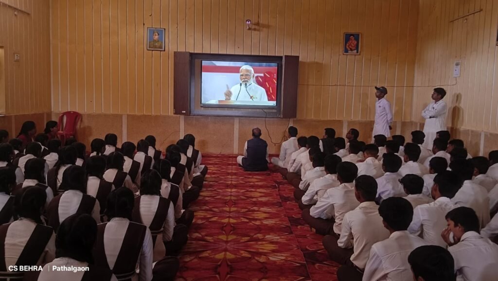 *पत्थलगांव:_वंदे मातरम के 150 वर्ष राष्ट्रभावना और जनभागीदारी संकल्प के साथ आज 7 नवंबर 2025 को सरस्वती शिशु मंदिर उच्च. माध्य. विद्यालय पत्थलगांव में राष्ट्रभाव और सांस्कृतिक चेतना हेतु 10 से 11 बजे के बीच माननीय यशस्वी प्रधानमंत्री नरेंद्र मोदी जी द्वारा शुभारंभ कार्यक्रम का प्रसारण छात्र छात्राओं अभिभावक,शिक्षक एवं नागरिक गण की उपस्थिति में कराया गया।