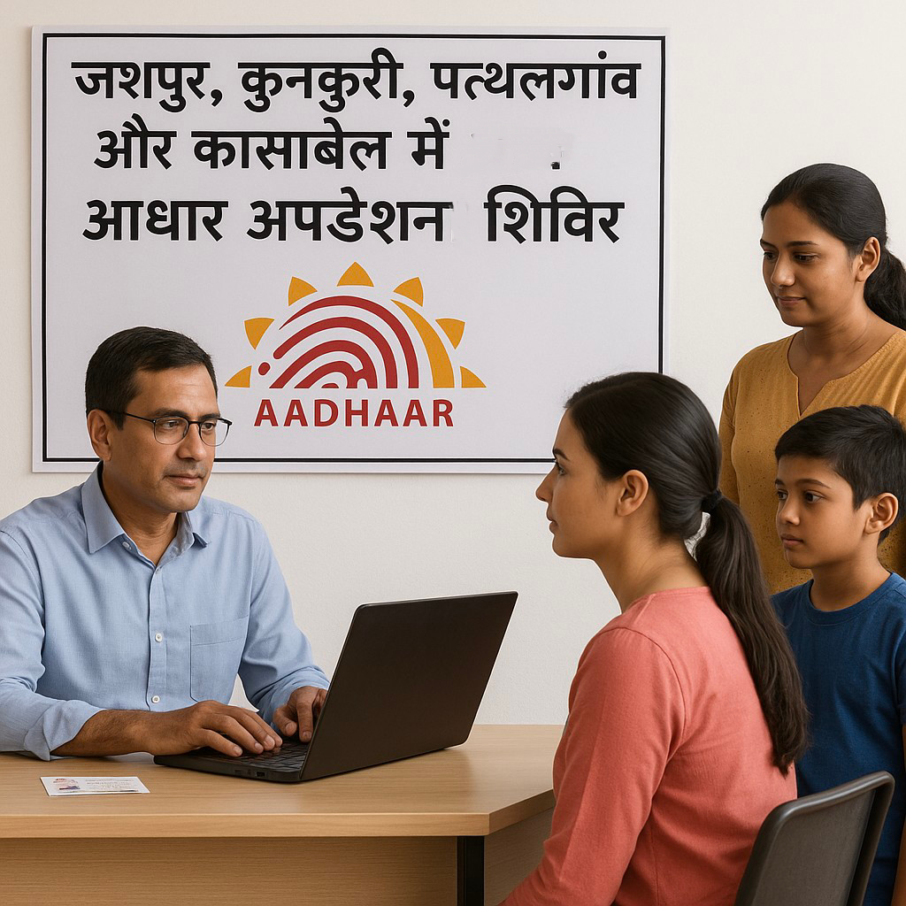 रायगढ़। भारतीय डाक विभाग रायगढ़ संभाग के अंतर्गत प्रधान डाकघर रायगढ़ एवं उपडाकघर सारंगढ़, जशपुरनगर, कुनकुरी, पत्थलगांव, हरदी सहित विभिन्न डाकघरों में आधार एनरोलमेंट एवं अपडेशन की सेवाएँ निरंतर प्रदान की जा रही हैं।इसी क्रम में डाक विभाग द्वारा दिनांक 29 नवंबर 2025 को प्रातः 10 बजे से रायगढ़ संभाग क्षेत्र के चुनिंदा स्कूलों में आधार नामांकन एवं सुधार शिविर आयोजित किया जा रहा है। यह शिविर निम्न स्थानों पर लगाए जाएंगे—महारानी लक्ष्मीबाई स्कूल, जशपुरनगर,,,शासकीय कन्या प्राथमिक शाला, सारंगढ़,,,नीरज फाउण्डेशन स्कूल, पत्थलगांव,,,,जोगपाल स्कूल कांसाबेल,,,आत्मानंद स्कूल कुनकुरी।