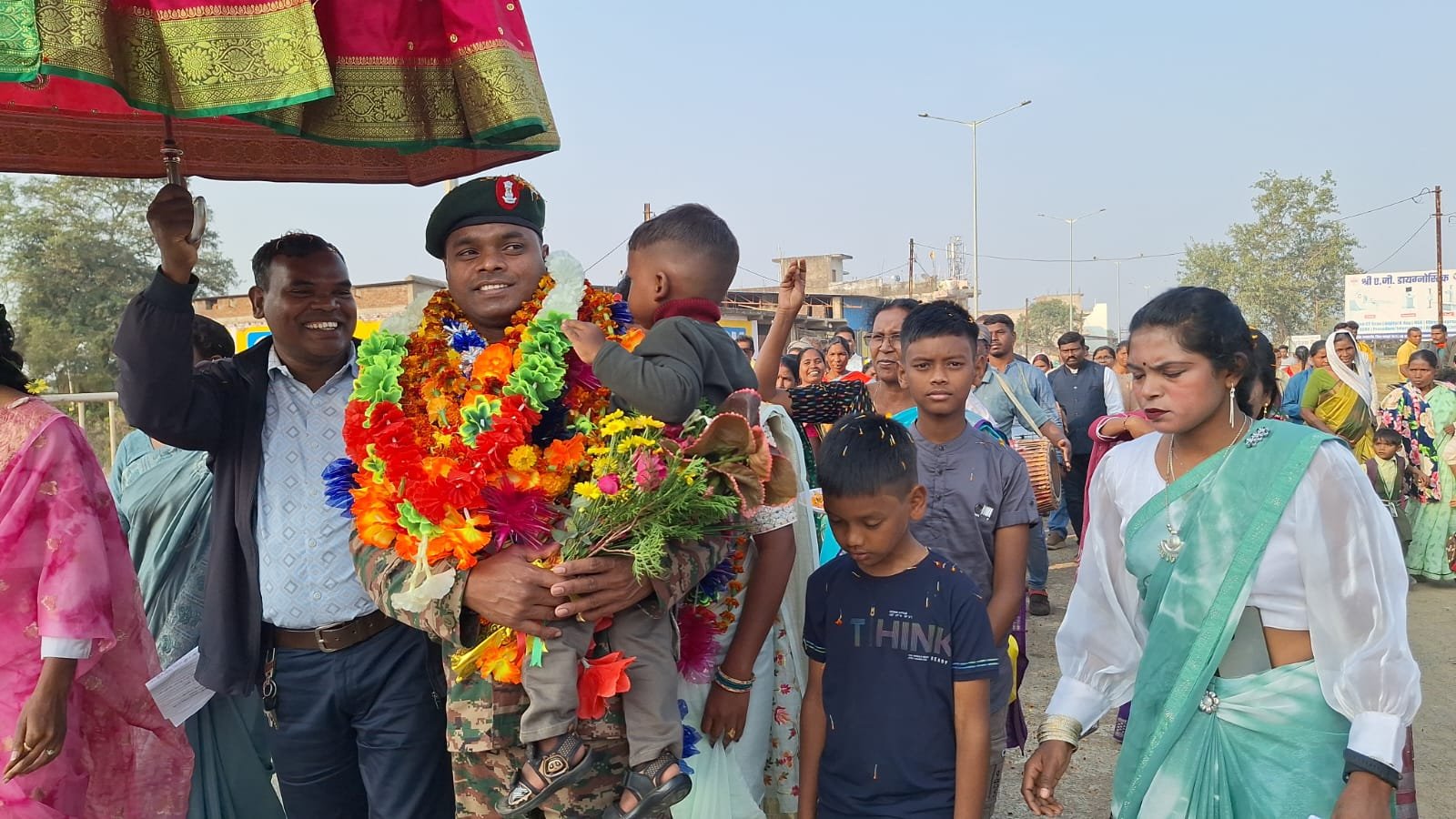 अंबिकापुर रोड स्थित न्यायालय के समीप गांव वालों ने पारंपरिक आरती, गाजे-बाजे और फूल-मालाओं के साथ उनका भव्य स्वागत किया।बता दें कि जशपुर जिले के पत्थलगांव निवासी पन्नेलाल लकड़ा 18 साल तक बिहार रेजिमेंट में पदस्थ थे।