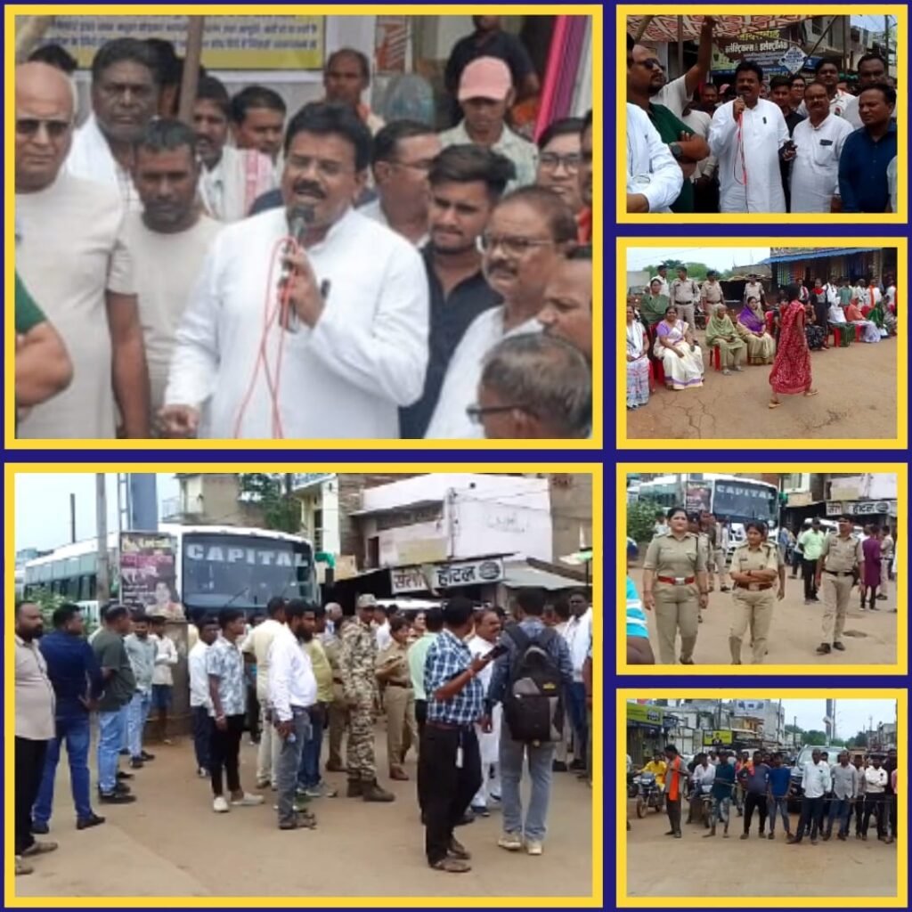 **दिनांक:-02/09/2025**मोहम्मद जावेद खान हरित छत्तीसगढ।।**करगीरोड-कोटा:-आम जनों सहित किसानों की बुनियादी सुविधाओं बिजली पानी/खाद/यूरिया, सड़क/शिक्षा/बेहतर स्वास्थ के लिए ब्लाक कांग्रेस कमेटी कोटा द्वारा कोटा विधायक अटल श्रीवास्तव के नेतृत्व में सोमवार 01-सितम्बर को जय स्तंभ नाका चौंक में एकदिवसीय सांकेतिक चक्काजाम किया..इस दौरान भारी संख्या में कोटा ब्लॉक के किसान/आमजन जनपद पंचायत ग्राम पंचायत के जन प्रतिनिधियों सहित कांग्रेस के महिला/पुरुष पदाधिकारियों सहित कांग्रेसी कार्यकर्ताओं की उपस्थिति रही..चक्का जाम के पूर्व से ही पुलिस व प्रशासन के आला अधिकारियों की मौजूदगी पूरे दल बल के साथ रही।**कोटा विधायक अटल श्रीवास्तव ने यूरिया डीएपी खाद की कमी के साथ कालाबाजारी कोटा विधानसभा क्षेत्र के अंतर्गत लोक निर्माण विभाग/जलजीवन-मिशन एवं प्रधानमंत्री ग्राम-सड़क योजना की सड़को की बदहाल सड़के विशेषकर अमाली/बिल्लीबंद/श्रीपारा..ग्राम की खस्ताहाल सड़के राजस्व विभाग के तहसीलदार खासकर बेलगहना के पूर्व तहसीलदार व मौजूदा कोटा तहसीलदार/आरआई पटवारी की कार्यप्रणाली नामांतरण नही करना लगातार अपने कार्यालय से अनुपस्थित रहना, तीन तीन महीनों तक बिजली के ट्रांसफार्मर नहीं बदलना सहित अन्य बुनियादी सुविधाओं को ध्यान में रखते हुए ये एक दिवसीय सांकेतिक चक्का जाम किया गया।