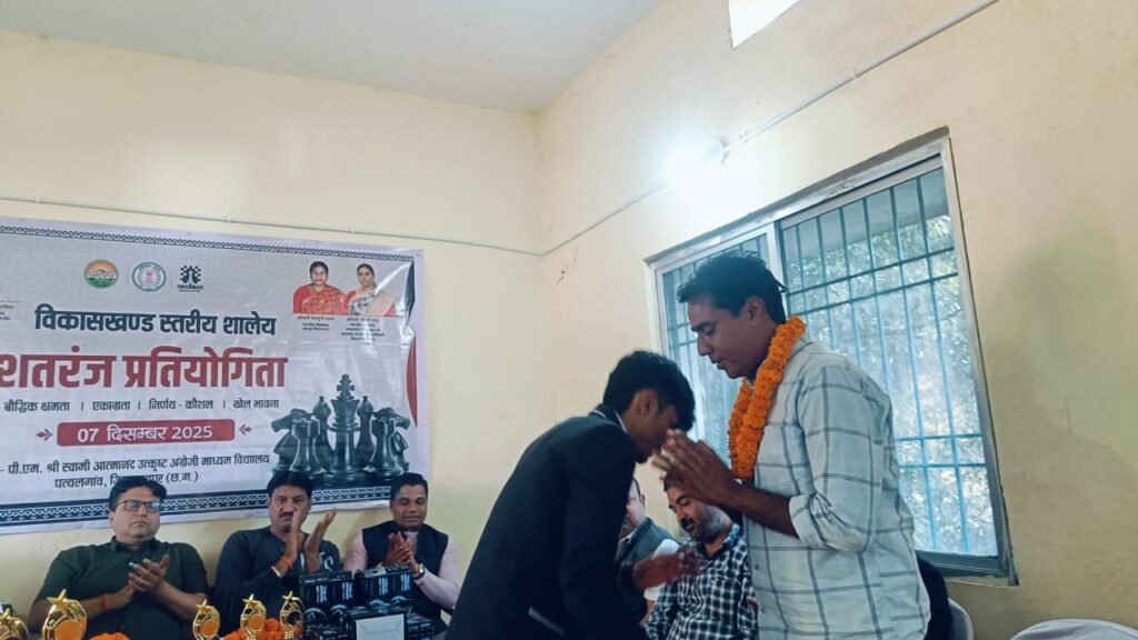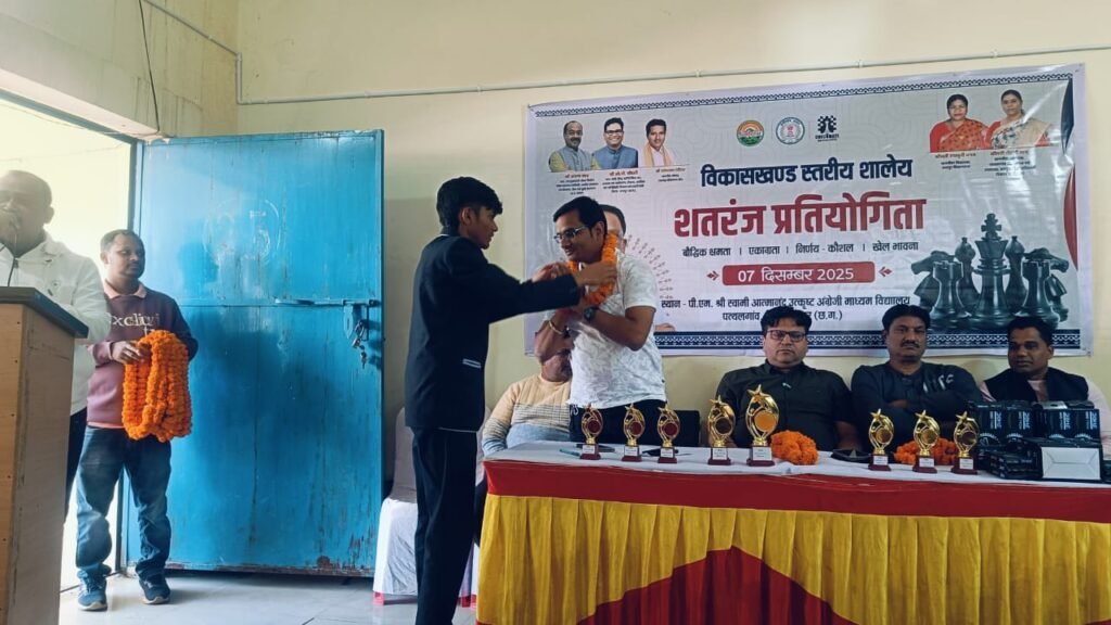 दोनों ने प्रतिभागियों को नियम, अनुशासन और खेल भावना के साथ प्रतिस्पर्धा करने के लिए प्रेरित किया। कार्यक्रम के समापन अवसर पर अतिथियों द्वारा सभी विजयी एवं प्रतिभागी विद्यार्थियों को पुरस्कार वितरित किए गए।मुख्य अतिथि अंकित बंसल ने अपने संबोधन में कहा कि 10 जनवरी को जिला स्तरीय शतरंज प्रतियोगिता का आयोजन पत्थलगांव में किया जाएगा, जिसमें क्षेत्र की विधायक गोमती साय सहित जिले के कई वरिष्ठ अधिकारी उपस्थित रहेंगे।