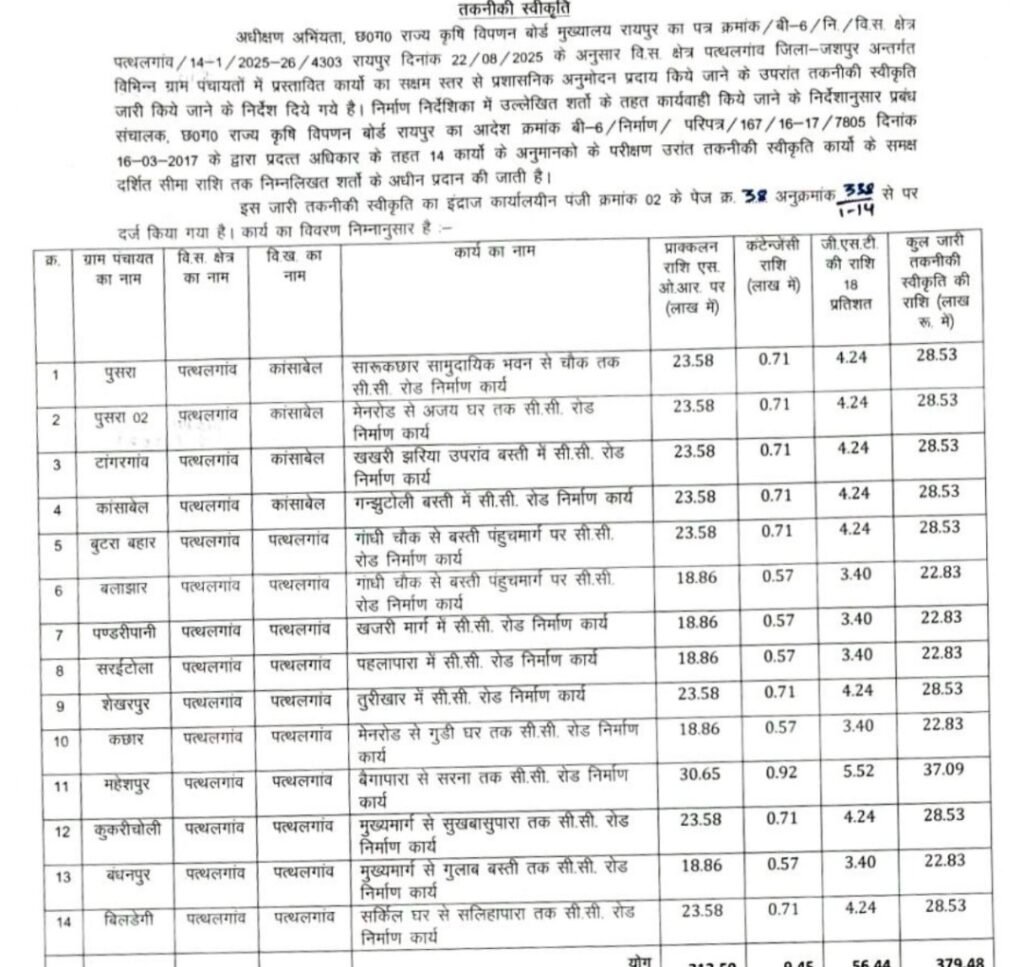जशपुर। लंबे समय से ग्रामीणों की मांग आखिरकार पूरी होने जा रही है। जिला पंचायत अध्यक्ष सालिक साय की पहल और अनुमोदन से जशपुर जिले के विभिन्न ग्राम पंचायतों में सीसी रोड निर्माण कार्यों की तकनीकी स्वीकृति मिल गई है।