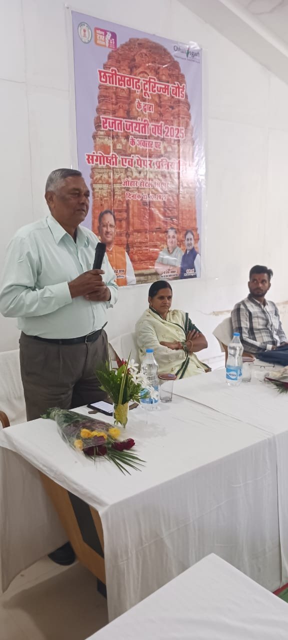 छत्तीसगढ़ प्रदेश स्थापना के रजत जयंती वर्ष 2025 के अवसर पर छत्तीसगढ़ पर्यटन बोर्ड 8 से 21 दिसंबर तक प्रदेशभर में 14 विविध पर्यटन गतिविधियों का आयोजन कर रही है। इसी श्रृंखला में होटल जोहार सिरपुर में 13 दिसंबर 2025 को छत्तीसगढ़ में पर्यटन की बढ़ती संभावनाएं विषय पर संगोष्ठी एवं शोधपत्र प्रस्तुति प्रतियोगिता का सफल आयोजन किया गया। कार्यक्रम ने स्थानीय युवाओं में पर्यटन जागरूकता जगाई और राज्य में पर्यटन की अपार संभावनाओं पर चर्चा को नई दिशा दी।