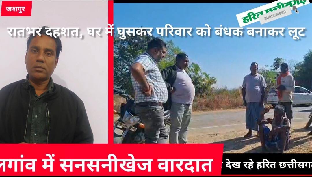 पत्थलगांव | करमीटिकरा में बीती रात उस वक्त हड़कंप मच गया, जब अज्ञात लुटेरों ने एक परिवार को बंधक बनाकर सनसनीखेज लूट की वारदात को अंजाम दिया। आधी रात करीब 12 बजे चाकू से लैस तीन बदमाश गुलाब सिंह जगत के घर में घुस आए और पूरे परिवार को चाकू की नोक पर बंधक बना लिया।लुटेरों ने करीब तीन घंटे तक घर में आतंक मचाया, इस दौरान घर में रखे नकदी, सोने-चांदी के जेवरात और कीमती सामान समेट कर फरार हो गए। विरोध करने पर बदमाशों ने गृहस्वामी गुलाब सिंह के साथ बेरहमी से मारपीट की, जिससे उनके चेहरे पर गंभीर चोटें आई हैं।घटना की सूचना मिलते ही पुलिस मौके पर पहुंची और घायल को इलाज के लिए अस्पताल भेजा गया। पुलिस ने इलाके को घेरकर जांच शुरू कर दी है तथा संभावित रास्तों पर नाकेबंदी कर दी गई है।इस दिल दहला देने वाली वारदात के बाद पूरे क्षेत्र में भय का माहौल है। ग्रामीणों में दहशत व्याप्त है, वहीं पुलिस ने जल्द ही आरोपियों को गिरफ्तार करने का दावा किया है।