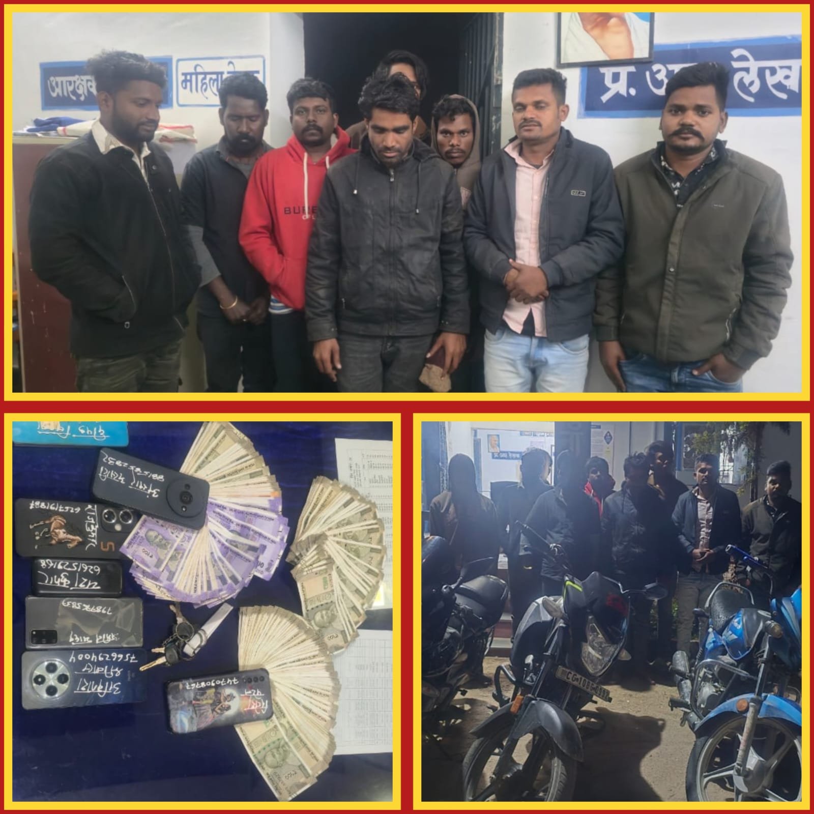 118700/₹ नगदी 07-नग विभिन्न कंपनियों के मोबाईल सहित 03-नग मोटर सायकल मशरूका 278700 जप्त।