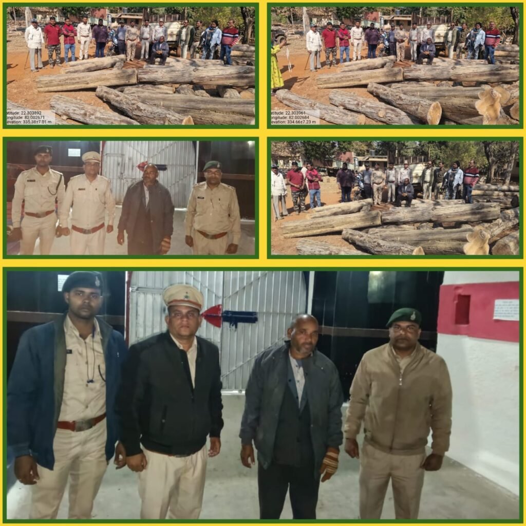 *दिनांक:-12/01/2026**मोहम्मद जावेद खान हरित छत्तीसगढ़।।**करगीरोड-कोटा:-11-जनवरी की रात सागौन तस्करो द्वारा सागौन प्रजाति की इमारती लड़कियों की अवैध कटाई करके परिवहन किए जाने की सूचना पर वन परिक्षेत्र अधिकारी सुरेश कुमार बंजारे ने वन विभाग के उच्चाधिकारियों को अवगत कराते हुए विभागीय अधिकारियों के मार्गदर्शन में कोटा सर्कल के स्टाफ के साथ कक्ष क्रमांक RF2494 में एक पिकअप वाहन में अज्ञात व्यक्तियों द्वारा सागौन प्रजाति के इमारती लकड़ी लोड किया जा रहा था..वन विभाग के अमले एवं कोटा पुलिस की टीम पूछताछ के लिए वाहन के करीब जाने पर पिकअप वाहन क्रमांक CG-12-E-0558 के चालक द्वारा तेजगति से जंगल की ओर भागने लगे जिसके बाद वन अमले के पिकप वाहन का पीछा करते हुए कुख्यात आरोपी अनिल श्रीवास/पिता शिवकुमार श्रीवास को धरदबोचा जबकि अन्य सहयोगी आरोपी मौके से फरार हो गए..