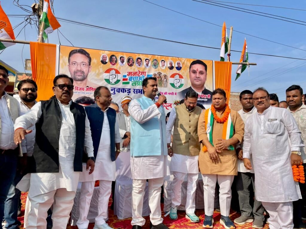 दिनांक:-01/02/2026**मोहम्मद जावेद खान हरित छत्तीसगढ़।।**करगीरोड-कोटा:-मनरेगा-बचाव महासंग्राम-अभियान के तहत रविवार 01-फरवरी को जय स्तंभ नाका चौक में कांग्रेसियों ने विशाल आमसभा का आयोजन किया मनरेगा का नाम बदलने सहित मनरेगा को कमजोर किए जाने के विरोध में मनरेगा-बचाव महासंग्राम अभियान के तहत जय स्तंभ चौक नाका में सभा कार्यक्रम का नेतृत्व पूर्व ब्लॉक कांग्रेस अध्यक्ष व वर्तमान मनरेगा प्रभारी आदित्य-दीक्षित के साथ आदिवासी-कांग्रेस किसान कांग्रेस-महिला कांग्रेस, युवक कांग्रेस एवं एनएसयूआई ने संयुक्त रूप से किया।**सभा में कोटा विधायक अटल श्रीवास्तव के नेतृत्व में कांग्रेसजनों ने सभा में पहुंचे अतिथियों का भव्य स्वागत किया..इस अवसर पर विजय जांगिड राष्ट्रीय सचिव एवं छत्तीसगढ़ के सह-प्रभारी, उमेश पटेल विधायक एवं पूर्व केबिनेट मंत्री, प्रदेश समन्वयक मनरेगा बचाव अभियान महेंद्र गंगोत्री अध्यक्ष जिला कांग्रेस कमेटी बिलासपुर ग्रामीण की उपस्थिति रही..कोटा-विधायक अटल श्रीवास्तव ने केंद्र सरकार पर निशाना साधते हुए कहा कि मनरेगा में कटौती से बेरोजगारी बढ़ेगी और पलायन की समस्या गंभीर होगी..कांग्रेस जन-जन को जागरूक कर इस अन्याय के खिलाफ निर्णायक लड़ाई लड़ेगी वही आदित्य दीक्षित ने सभा को संबोधित करते हुए कहा कि मनरेगा गरीबों-किसानों और मजदूरों की जीवन रेखा है..इसे कमजोर करना सीधे-सीधे ग्रामीण अर्थव्यवस्था पर हमला है..कांग्रेस पार्टी मनरेगा की रक्षा के लिए सड़क से सदन तक संघर्ष करेगी और जनता के अधिकारों से कोई समझौता नहीं होने दिया जाएगा।**सभा में कुलवंत सिंह विधायक प्रतिनिधि नगर पंचायत देवेंद्र कश्यप कमलू, राजूसिदार, दिलीप श्रीवास, चिंतार,कन्हैया गंधर्व अनिल मसीह, भरत पटेल, रहस यादव,अली कश्यप भोला मेश्राम, कुलदीप यादव, पावक सिंग, मनोज मरावी , लक्ष्मीन बिजवार, रजनी मरकाम, मीनू जायसवाल, दुर्गा यादव, कुसुम सोनी,जब्बार खान, कान्हा गुप्ता , देवेंद्र कौशिक, हरीश नामदेव, आनन्द मिश्रा अंकुर वैष्णव, राजू साहू अशोक अनंत, दुखभजन, श्याम यादव, अमीनुद्दीन, पंचराम सहित, युवक कांग्रेस, आदिवासी कांग्रेस, किसान कांग्रेस, एनएसयूआई, अल्पसंख्यक प्रकोष्ठ के पदाधिकारी मंडल-सेक्टर बूथ अध्यक्ष-वर्तमान व पूर्व जनप्रतिनिधि, नगर अध्यक्ष पार्षद,जिला पंचायत सदस्य जनपद सदस्य, सरपंच तथा कांग्रेस पार्टी के सभी प्रकोष्ठों के पदाधिकारी व कार्यकर्ता बड़ी संख्या में उपस्थित रहे..कार्यक्रम का समापन मनरेगा बचाव के संकल्प और संघर्ष को और तेज करने के आह्वान के साथ किया गया।