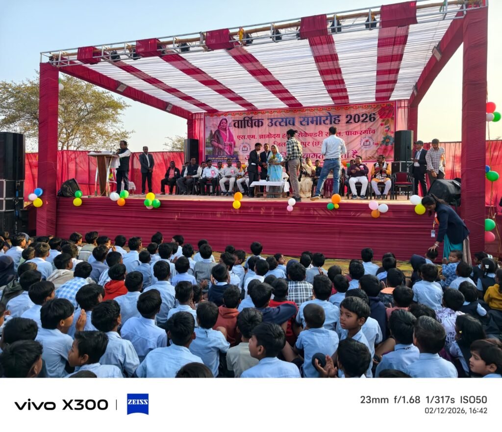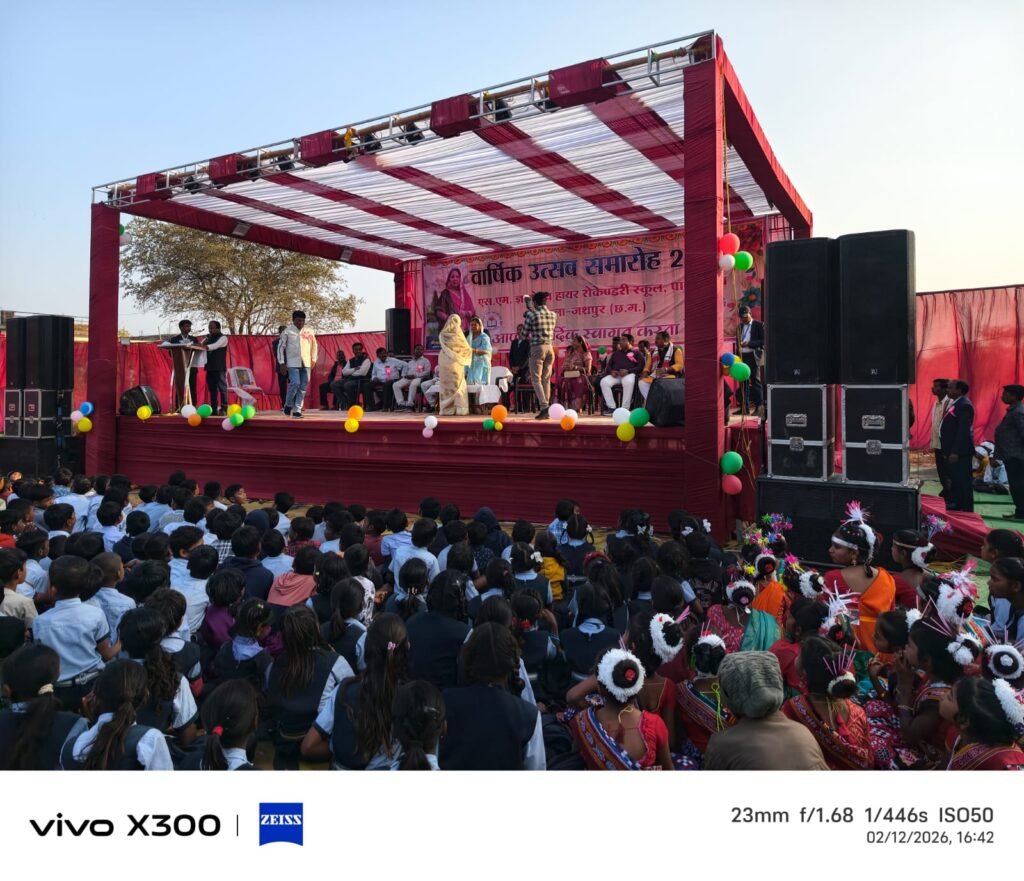 दर्शकों ने तालियों की गड़गड़ाहट से उनका उत्साहवर्धन किया।मुख्य अतिथि श्रीमती कौशल्या देवी साय ने अपने प्रेरणादायी उद्बोधन में विद्यार्थियों को परिश्रम, अनुशासन एवं संस्कारों के साथ आगे बढ़ने की सीख दी तथा विद्यालय परिवार के प्रयासों की सराहना की। उन्होंने कहा कि शिक्षा ही समाज और राष्ट्र के उज्ज्वल भविष्य की आधारशिला है।कार्यक्रम का समापन आभार प्रदर्शन के साथ हुआ। रात्रि में सभी अतिथियों एवं उपस्थित जनों के लिए सामूहिक भोजन की व्यवस्था की गई, जिसमें सभी ने स्नेहपूर्वक सहभागिता की।इस प्रकार वार्षिक उत्सव समारोह विद्यालय के लिए अविस्मरणीय, प्रेरणादायी एवं ऐतिहासिक क्षण बन गया।