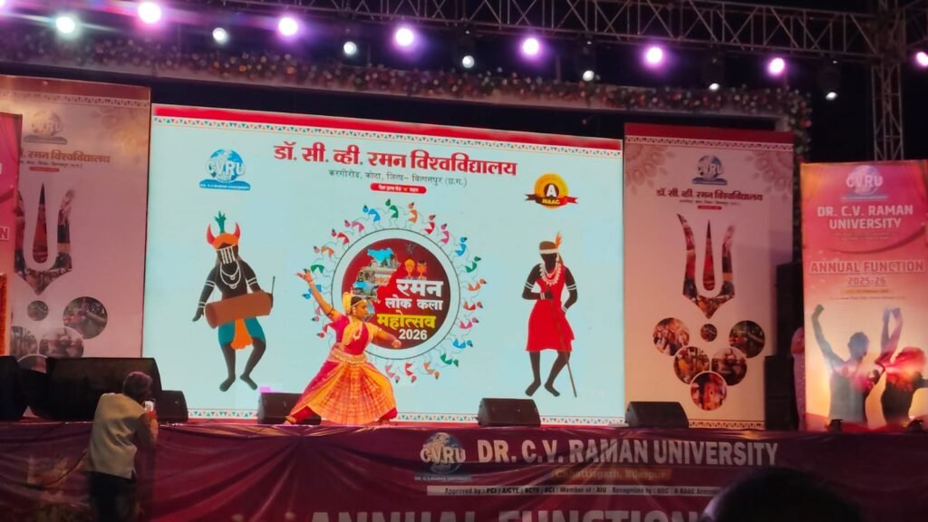 **दिनांक:-17/02/2026**मोहम्मद जावेद खान हरित छत्तीसगढ़।।**करगीरोड कोटा:-रमन लोक कला महोत्सव के चौथे दिन विश्वविद्यालय परिसर में आयोजित वार्षिक उत्सव ने पूरे वातावरण को उत्साह से भर दिया सुबह से ही छात्र-छात्राओं में वार्षिकउत्सव को लेकर विशेष उत्साह देखने को मिला..पारंपरिक परिधानों से सजे विद्यार्थियों ने मंच संभालते ही दर्शकों को अपने प्रस्तुति से उपस्थित जनों को मंत्रमुग्ध कर दिया..कार्यक्रमों की शुरुआत देशभक्ति गीतों और समूह नृत्य से हुई जिसने उपस्थित जनसमूह में राष्ट्रप्रेम की भावना का संचार किया..विद्यार्थियों ने एकल नृत्य-सामूहिक नृत्य-एकल गायन और सामूहिक गायन के माध्यम से अपनी सृजनात्मकता और मंचीय-आत्मविश्वास का प्रभावी प्रदर्शन किया।