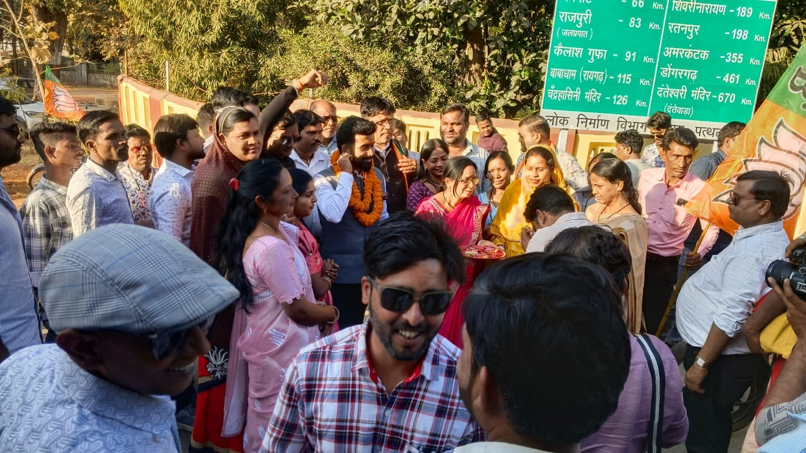 पत्थलगांव।भारतीय जनता युवा मोर्चा के नवनियुक्त जिलाध्यक्ष विजय आदित्य सिंह जूदेव के प्रथम पत्थलगांव आगमन पर युवाओं और कार्यकर्ताओं ने भव्य एवं ऐतिहासिक स्वागत किया। इस अवसर पर नगर में युवाओं द्वारा जोश और उत्साह से भरी बाइक रैली निकाली गई, जिसने पूरे क्षेत्र में ऊर्जा और संगठनात्मक मजबूती का संदेश दिया।बाइक रैली के पहले विजय आदित्य सिंह जूदेव ने तमता एवं लुड़ेग का भी दौरा कर स्थानीय कार्यकर्ताओं से संवाद किया। उन्होंने युवाओं से संगठन को और अधिक सशक्त बनाने का आह्वान किया तथा आगामी विधानसभा चुनाव की तैयारियों को लेकर स्पष्ट दिशा-निर्देश दिए।अपने संबोधन में जूदेव ने कहा कि “आने वाले समय में पत्थलगांव विधानसभा में लगातार जीत दर्ज करनी है। हमें फ्रंट फुट पर लड़ना है, ठीक उसी तरह जैसे पिछले विधानसभा चुनाव में युवाओं ने पूरी ताकत के साथ संघर्ष किया था।” उन्होंने सभी कार्यकर्ताओं से आग्रह किया कि वे युवा संगठन को बूथ स्तर तक मजबूत करें और पूरी निष्ठा व समर्पण के साथ कार्य करें।धर्म और राजनीति के विषय पर बोलते हुए जिलाध्यक्ष ने कहा कि “धर्म और राजनीति दो अलग-अलग विषय हैं। धर्म सेवा और संस्कार का भाव है, जबकि राजनीति में राजस्व, प्रशासन और विकास से जुड़े मुद्दे प्रमुख होते हैं।” वहीं धर्मांतरण को लेकर उन्होंने चिंता व्यक्त करते हुए कहा कि “जहां-जहां देश या राज्य में धर्मांतरण की घटनाएं हुई हैं, वहां क्षेत्र कमजोर होते दिखे हैं। भारत जंबूद्वीप है और इसकी एकता-अखंडता सर्वोपरि है।”इस अवसर पर जिला महामंत्री मनीष अग्रवाल, भाजयुमो जिला उपाध्यक्ष अवधेश गुप्ता, नगर पालिका अध्यक्ष संगीता सिंह, सुनील अग्रवाल, मंडल अध्यक्ष अंकित बंसल, ग्रामीण मंडल अध्यक्ष हेमंत बंजारा, रूप सिंह राठिया, कुंदन शर्मा, हिमांशु शर्मा, अरुण यादव, सौरभ शर्मा, सुनील गर्ग, करेश तिग्गा, सुदर्शन सिंह, रामकिशन यादव, महेश गुप्ता, कमलेश यादव, बंटी जटिया, नवीन यादव, भुवनेश्वरी यादव, सलमी निकुंज, सुचिता एक्का, उर्मिला पटेल, जीतू अग्रवाल, हेमंत पटेल, भागीरथी राठिया, दिनेश यादव सहित बड़ी संख्या में युवा कार्यकर्ता एवं पदाधिकारी उपस्थित रहे।कार्यक्रम के दौरान युवाओं में उत्साह देखने लायक था और पूरे आयोजन ने यह स्पष्ट कर दिया कि पत्थलगांव विधानसभा में भाजयुमो पूरी मजबूती और रणनीति के साथ आगामी चुनावी मैदान में उतरने के लिए तैयार है।